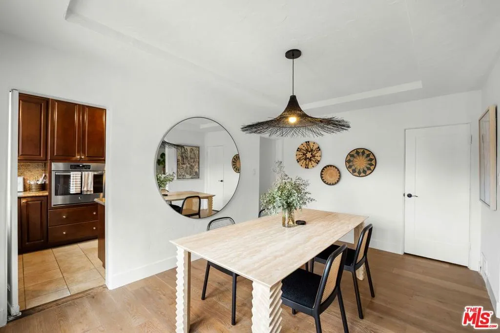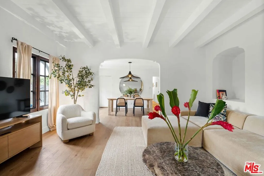 Beautifully updated side-by-side Spanish duplex with expansive grassy park-like yard. Mature landscaping in protected gated front yard. This exquisite, spacious one bedroom home is a gem you do not want to miss. Upon entry you will walk into a sunshine filled, open living room with beamed ceiling, deep windows, top-of-the-line furniture, and tons of natural light. The living room opens to the formal dining room, which opens to the kitchen. No expenses were spared with the furniture and decor in this gorgeous home. Kitchen has stone counters, is equipped with appliances including microwave, fridge/freezer, and dishwasher drawer, and washer and dryer. Laundry room is off the kitchen with a side door to the beautiful backyard. The bedroom features a King bed and state of the art mattress which offers remote controlled massage settings and more. Extra large backyard with hardscape and grassy area, pergola area. One car garage and driveway parking, plus a bonus office space with glass doors to yard. HOME IS *UNFURNISHED* Amazing central location close to The Grove and shops/restaurants on Beverly, Melrose, La Brea etc.