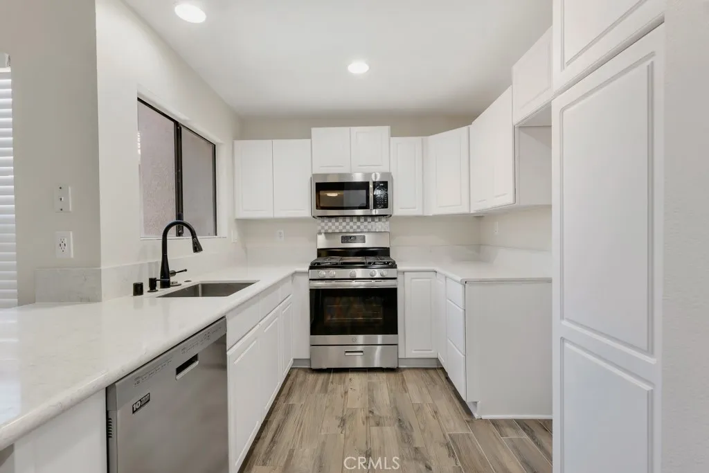 Welcome to Springtime Condominiums, one of the most desirable communities in Simi Valley. This FHA-approved end unit is situated in a quiet location away from the street, providing easy access to the pool and spa. The inviting landscaping creates a pleasant atmosphere for spending time outdoors. This single-level, three-bedroom, two-bathroom home is move-in ready and offers the benefit of having no neighbors living above. The open-concept floor plan is bright and airy, featuring an updated kitchen with a six-burner range, a breakfast bar, and an adjacent dining area. A large balcony provides a comfortable space for grilling or relaxing in your own private retreat. Practical features include closet organizers in all bedrooms, an in-unit washer and dryer, and a dedicated water heater. The property also includes a two-year-old air conditioning and forced air heating system. Parking is convenient with a one-car enclosed garage and an additional assigned space. Hurry on this rare find for the best in fine living - don't miss this chance to make it yours!