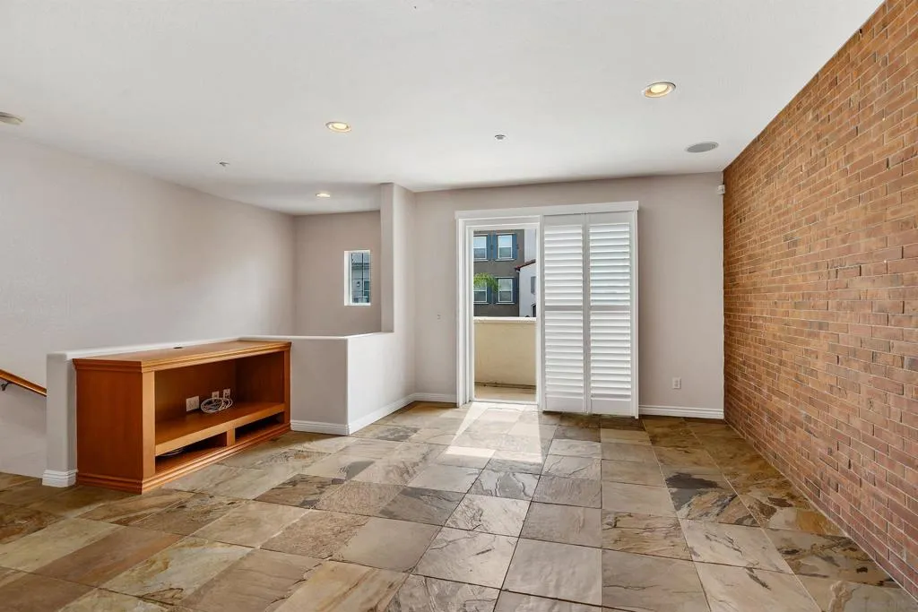 Former builder model within the San Moritz complex in 4S Ranch that’s just a minute or two walk to both 4S Commons and Patriot Park. Very clean tri-level townhome with an attached two-car garage and in-unit stacked laundry, 2 bedrooms + alcove, 2.5 bathrooms, 1335 square feet. The 1st floor consists of the secondary bedroom with an ensuite bathroom, two car garage with an epoxy finished floor, dual overhead storage racks + built-in storage closet. The 2nd floor is the heart of the home with the kitchen, combo family and dining areas, gas fireplace, balcony, powder and laundry rooms. The kitchen has stainless steel appliances, Silestone counters, gas cooktop and a center island with bar seating. The 3rd floor is the primary suite with an alcove that could be a home office or other. The primary also has dual sinks and walk-in closet. Builder upgrades include: faux brick wall and built-in entertainment center and wine racks at the main level, ceiling mounted speakers. Solid surface flooring throughout consisting of stone and wood laminate. The house has AC for those needed warm days. Street parking close by. Located within the highly regarded Poway Unified School District (PUSD) – Monterey Ridge Elementary (.6 miles), Oak Valley Middle (2.1 miles), Del North High (1.2 miles). The San Moritz community amenities include a pool, spa and BBQ areas.