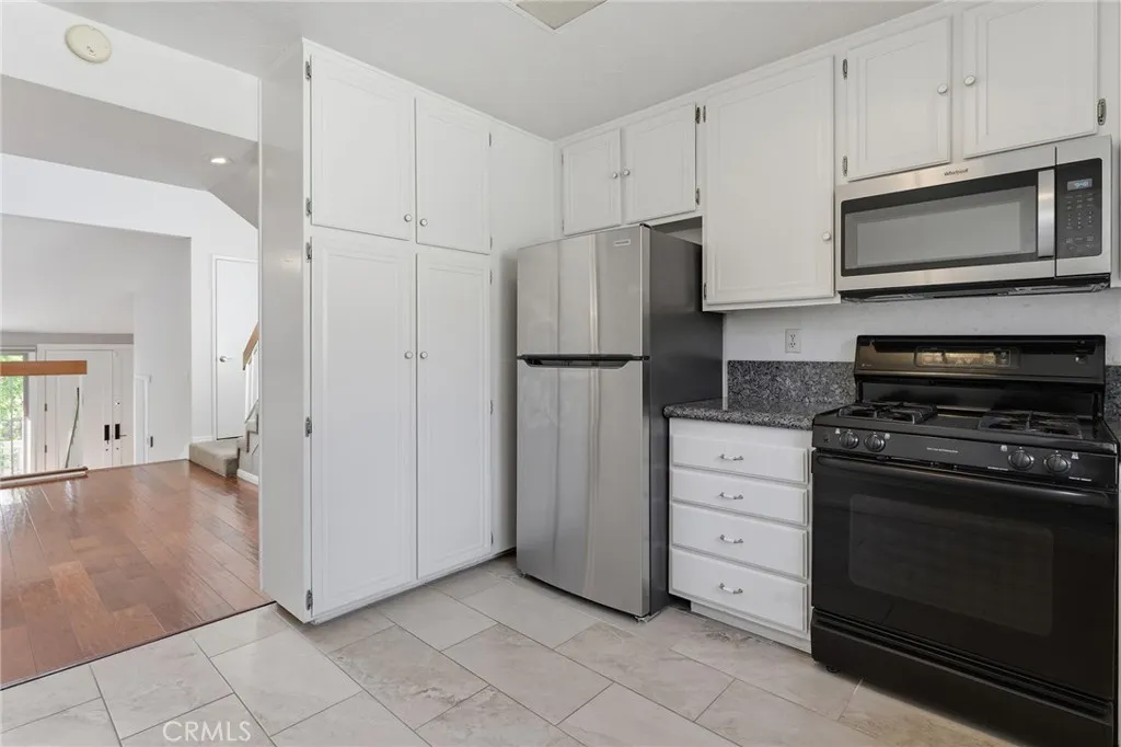 Gorgeous rare and desirable end unit townhome in the beautiful community of Dove Creek with private patio & attached 2-car garage with direct access! The unit features 2 bedrooms, 2 bathrooms, and is privately situated in a quiet location in the complex away from any street noise. Upon entry you will find a gated front patio perfect for outdoor dining & entertaining. Step inside to find an entry foyer that opens to the spacious sunlit living room featuring high vaulted ceiling, wood mantled fireplace, wood flooring, and sliding glass door that opens to the front patio providing a seamless indoor-outdoor living experience. The separate formal dining room overlooks the living room with direct kitchen access and has a soaring two-story ceiling with large picture window that basks the room with natural light. The upgraded kitchen features built-in cabinetry with pantry storage and newer stainless appliances including fridge/freezer, built-in range, microwave, and dishwasher. A downstairs bedroom with glass double door entry is ideal for office or guests and has access to a remodeled bathroom with new vanity quartz counter, and walk-in shower. Upstairs you will find the primary suite boasting a grand double door entry, wood product walls, wall-to-wall closet space, and private en-suite bathroom with dual sinks, bath tub and shower. There is direct access to the 2-car garage where you will find the laundry area with additional storage. Additional system upgrades per seller: newer HVAC system (2024), newer water heater (2024), newer roof (2021), and newer electrical panel (2017). Community amenities include a heated swimming pool, multiple spas, tennis courts, and manicured grounds with walking paths and pristine landscaping. HOA also covers fire and earthquake insurance, water & trash costs, as well as weekly gardening and annual tree trimming. Adjacent to dining/shopping at Westfield Topanga Mall and Village including the vibrant Topanga Social, Calabasas Commons, Warner Center, and a short drive over the canyon to Malibu. Don’t miss this spectacular offering!