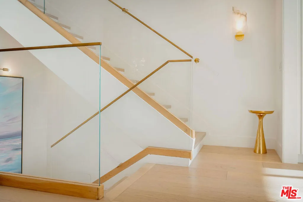 Floating above the canyon with sweeping, unobstructed views, this designer-redone corner townhouse captures what people come to the Palisades Highlands for in the first place: light, space, and a sense of calm that's hard to replicate anywhere else on the Westside. From the moment you step in, walls of glass, and an open living space pulls your eye straight out to the horizon. The living, dining, and kitchen areas connect effortlessly, anchored by a statement fireplace and finished in crisp whites, warm textures, and refined gold accents. The kitchen is both polished and practical, built with top-tier materials and a layout that actually works for daily life. Upstairs, the primary suite feels tucked away and quiet, with a sunlit reading nook that looks out over the canyon, one of those spots you end up using more than you expect. A generous walk-in closet and a thoughtfully designed ensuite bath complete the space. The lower level adds flexibility without compromise. A dramatic glass entry leads to a large den/media room or guest space, which can easily be re-converted into a second primary bedroom. It opens to a secluded deck that feels removed, private, and ideal for entertaining or unwinding at the end of the day. An office and full bath accompany the guest space on the lower level. Beyond the home itself, the Highlands are clearly on the rise again. Cafe Vida has announced its return just down the hill in the Highlands shopping center, Gelson's is set to rebuild, and Caruso's Palisades Village is expected back this August, bringing back the lifestyle and convenience that define the area. The HOA includes a pool, spa, gym, sauna, two tennis courts, and fire insurance. This is a home for someone who wants views, design, and quiet, without giving up access to the best of the Palisades.
