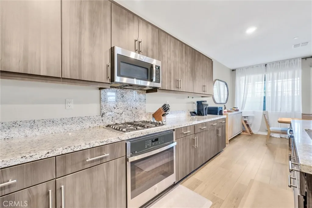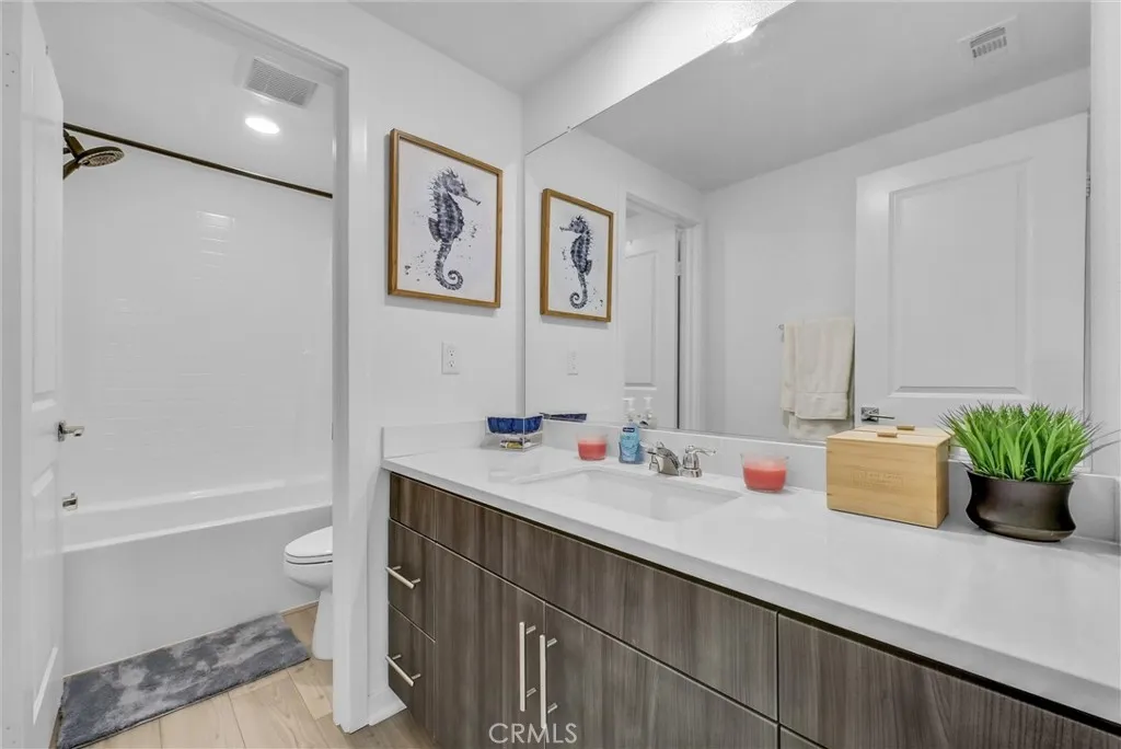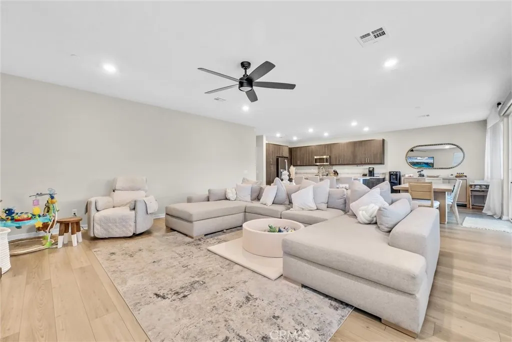 Located in the desirable River Ranch community of Rialto, this well-maintained two-story home offers approximately 2,700 square feet of living space with 4 bedrooms and 3 bathrooms, including a main-level bedroom and full bath. The open-concept layout connects the kitchen, dining area, and living space, ideal for both everyday living and entertaining. The kitchen features a center island, quartz countertops, and modern appliances. The property includes numerous upgrades throughout. The front yard features an extended driveway, artificial turf, enhanced landscaping, and expanded entry stairs. The backyard is designed for outdoor enjoyment with landscaping, a covered patio, fully electric patio cover, and lighting throughout. The garage has been upgraded with epoxy flooring. Upstairs includes a versatile loft, additional bedrooms, and a spacious primary suite with en-suite bathroom and walk-in closet. Additional features include an upstairs laundry room, recessed lighting, central heating and air, and a leased solar energy system. Leased solar system in place to support energy efficiency; buyer to assume lease. The home is situated on a low-maintenance lot within a planned community offering amenities such as a pool, spa, parks, and recreational areas. Conveniently located near shopping, dining, and with easy access to major freeways. See Virtual Tour https://media.realestatephotoshoot.com/2667-Emerald-Bay-Dr/idx