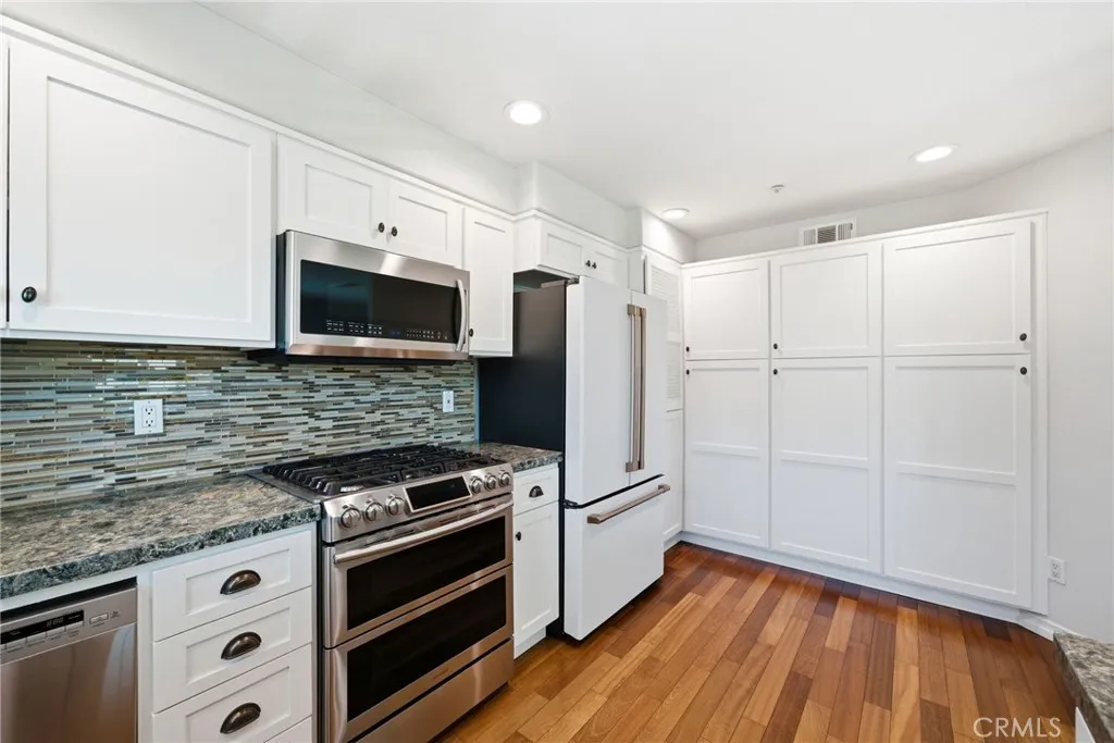 Beautifully upgraded end-unit townhome in the gated Seacliff Palms community, ready for you to move right in. Ideally located just minutes from 5 Points, Trader Joe’s, and only 2.5 miles from the beach. Enjoy abundant natural light throughout, a remodeled kitchen with granite countertops and stainless steel appliances, and a spacious living room with vaulted ceilings and hardwood floors. The oversized upstairs primary suite features an ensuite bath with a separate tub and shower. A downstairs bedroom offers its own private entrance, backyard access, and a ¾ ensuite bath—perfect for guests or flexible living. Additional highlights include a 2-car attached garage with upgraded epoxy flooring and newer cabinetry.