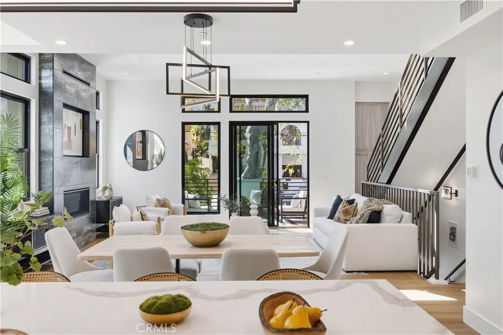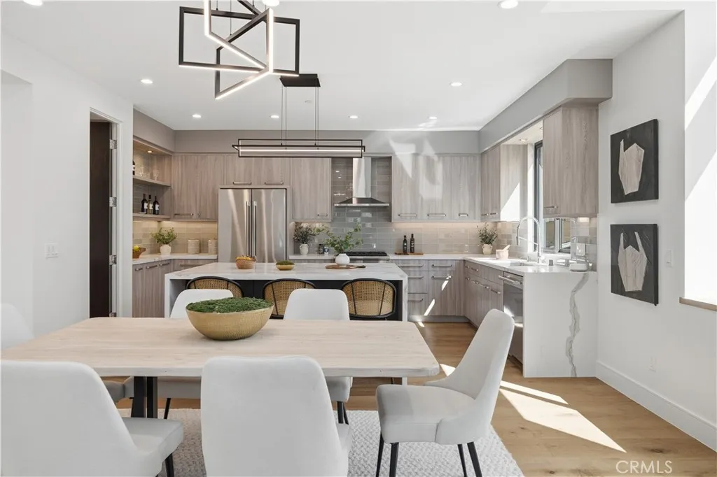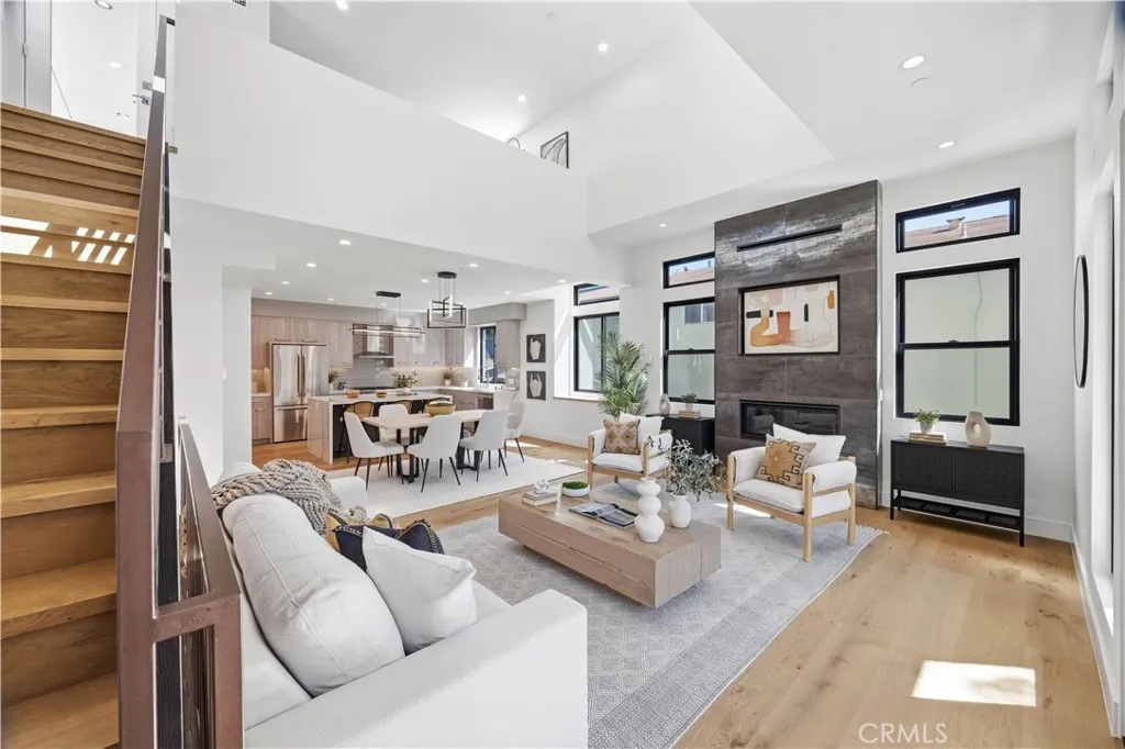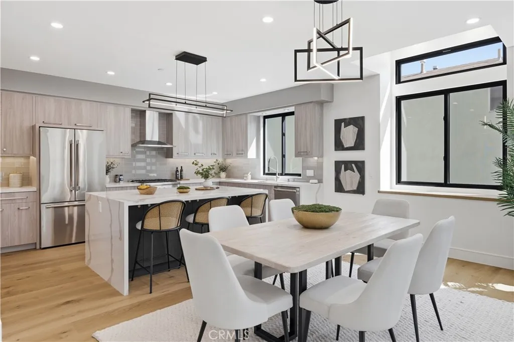 Brand-New Construction in Prime North Redondo Beach! - Tucked away in one of North Redondo’s most sought-after neighborhoods, this stunning front-unit townhouse combines modern luxury with effortless coastal living. Designed to maximize natural light, the home features a bright, open layout and elegant finishes throughout. A highlight of the property is the spacious mezzanine level with its own balcony—perfect as a media lounge, home office, or play area, offering flexibility for any lifestyle. The inviting living area centers around a sleek gas fireplace and is enhanced by wide-plank white oak hardwood flooring, solid-core doors, and recessed LED lighting. The gourmet kitchen is a showpiece, featuring an oversized island with quartz countertops, a stylish tiled backsplash with hidden outlets, and high-end cabinetry with soft-close metal drawers. Top-of-the-line Thermador stainless steel appliances—including a gas range, French door refrigerator, dishwasher, and microwave drawer—complete this impressive space. Each bathroom is thoughtfully designed with custom mirrors, contemporary lighting, and Hansgrohe fixtures. The home also includes a dedicated laundry room with a sink and side-by-side hookups, providing everyday convenience. Comfort is guaranteed with central air conditioning, forced-air heating, and a tankless water heater for energy efficiency. Additional features include Andersen windows, solar panels, and a two-car garage with a wooden door. The smart home system offers peace of mind with motion sensors, exterior cameras, a video doorbell, and remote control for lighting, garage, and entry doors—all easily managed from your phone. With its sophisticated design, premium finishes, and modern technology, this home delivers the best of Redondo Beach living—stylish, secure, and ready to enjoy.