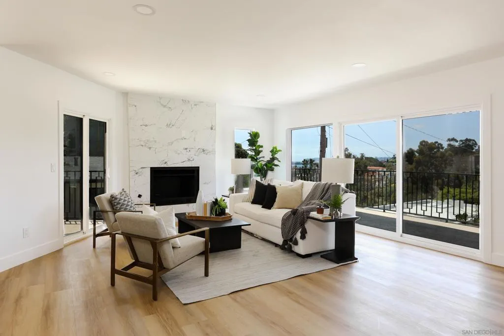 2861 Brant in Mission Hills is a stunning 3-bedroom, 3-bathroom residence spanning 2,940 square feet, boasting of canyon/harbor views. Nestled in the prestigious Mission Hills enclave of North Arroyo Canyon neighborhood, this property combines modern luxury and unparalleled living experience. Open-concept design maximizes space and natural light, creating a bright and airy ambiance. Home flows seamlessly from the gourmet kitchen to the expansive living and dining areas, perfect for entertaining or spacious family living. The fully renovated kitchen is a chef’s dream, featuring high-end stainless steel appliances, custom cabinetry, quartz countertops, a large center island, and designer fixtures, all tailored for both functionality and style. Home has been completely transformed with top-tier upgrades, including luxury vinyl flooring, recessed lighting and aesthetic appeal and modern convenience. Three generously sized bedrooms provide ample comfort. The primary suite is a serene retreat with harbor view, a walk-in closet, and a spa-inspired en-suite bathroom featuring dual vanities, a soaking tub, and a walk-in show. All three bathrooms have been meticulously updated with premium materials, including sleek tiles, contemporary vanities, and high-end fixtures, offering a touch of sophistication. Expansive windows and thoughtfully designed wrap-around curated decking showcase the views of the western harbor, Point Loma, creating a picturesque backdrop for daily living and sunset gatherings. Situated in Mission Hills, the home offers proximity to San Diego’s
