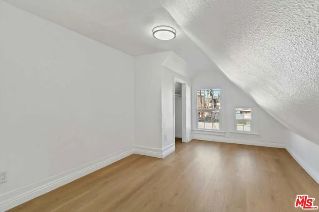 Completely Remodeled 3BD/1BA Bright Upper Unit with 2 Parking Spaces & Security! Ideally situated between 11th St and 12th St in a quiet, low-traffic neighborhood (15 mph residential zone). This second-floor unit features an abundance of natural light with an east-facing orientation and pleasant views. The unit has been fully renovated with brand-new upgrades throughout, including brand new modern kitchen appliances with new cabinets including pantry, granite countertop, refrigerator, microwave, and gas stove, waterproof flooring throughout, new dual-pane windows, and fresh interior paint. The property sits on a large 8,570 sq ft lot and offers excellent amenities: 2 parking spaces included, gated entry with automatic gate, CCTV security system, and additional guest parking available. Just minutes from DTLA, Hancock Park, and Larchmont Village, this property offers easy access to dining, shopping, and public transportation. The convenient location puts you close to Downtown Los Angeles, USC, LA Live, many restaurants and shops, and within easy reach of public transit and freeways. Available for immediate move-in. Don't miss your chance to live in one of L.A.'s most vibrant and central neighborhoods! Virtual staging photos showcase the kitchen, living room, and primary bedroom.