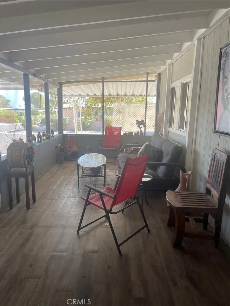 own the land and home of this Beautifully maintained 2-bedroom, 1.5 bathroom home corner lot with circular driveway room for RV 2 covered carports all nestled in the serene Desert Crest Country Club—a vibrant 55+ community in Desert Hot Springs. Spacious Living: This 1,425 sq ft residence features an open floor plan complemented by an additional ~300 sq ft Arizona room, perfect for relaxation or entertaining guests newer central heating and air newer roof. Master Suite: The oversized master bedroom boasts high wood-beam ceilings and offers breathtaking views of the San Jacinto Mountains, providing a tranquil retreat. Outdoor Amenities: Situated on a desirable corner lot, the property includes a circular driveway, dual covered carports, and ample parking space for up to six vehicles. The covered backyard provides privacy and shade, ideal for afternoon relaxation. Community Features: Residents enjoy ownership of the land with no space rent and benefit from a low HOA fee of $143/month. The community offers unlimited golfing, 3 lakes, a hot spring mineral pool, Jacuzzis, a recreation room, pool tables, ping-pong, a library, a gym, and weekly activities, all surrounded by stunning mountain views. Owner is Lic Broker 1 bed 1 bath with a separate adu attached.