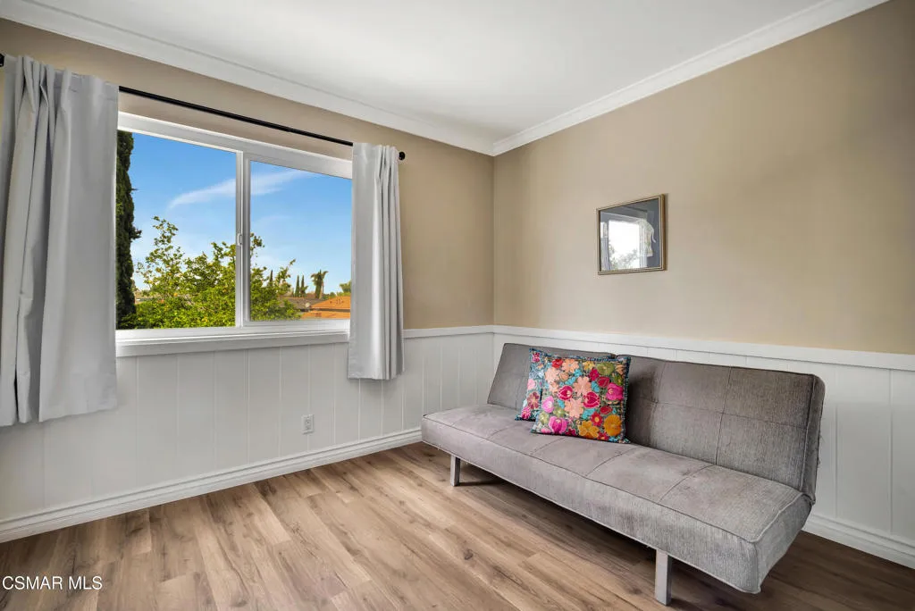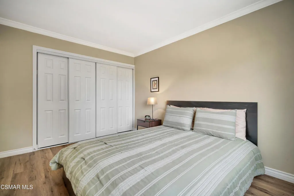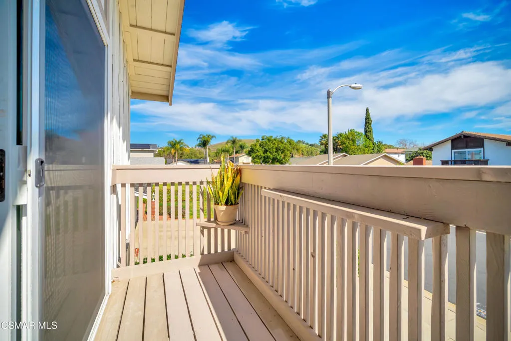 Immaculate 2-story cul-de-sac home offering bright, move-in ready living with recent updates throughout. The open kitchen features a breakfast bar, garden/bay window, white cabinetry, wood like flooring and built-in appliances, and flowing to a spacious family with sliding doors to a large covered patio and private lawn--ideal for entertaining. Highlights include vaulted ceilings, a formal living and dining area with wood like flooring throughout, central A/C and furnace, dual-pane windows, solar and Tesla charging station. The master suite boasts a balcony with distant mountain views and a generous closet; plus, spacious secondary bedrooms. Located minutes from top schools (Lang Ranch, Los Cerritos, Westlake High), library, parks, shopping and trails.