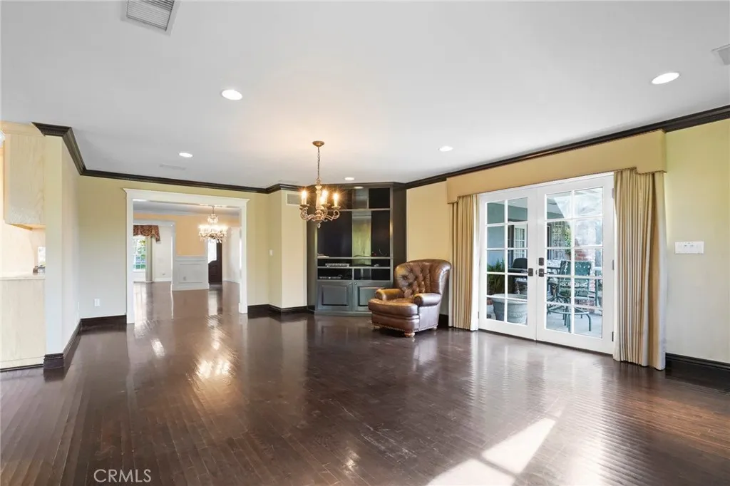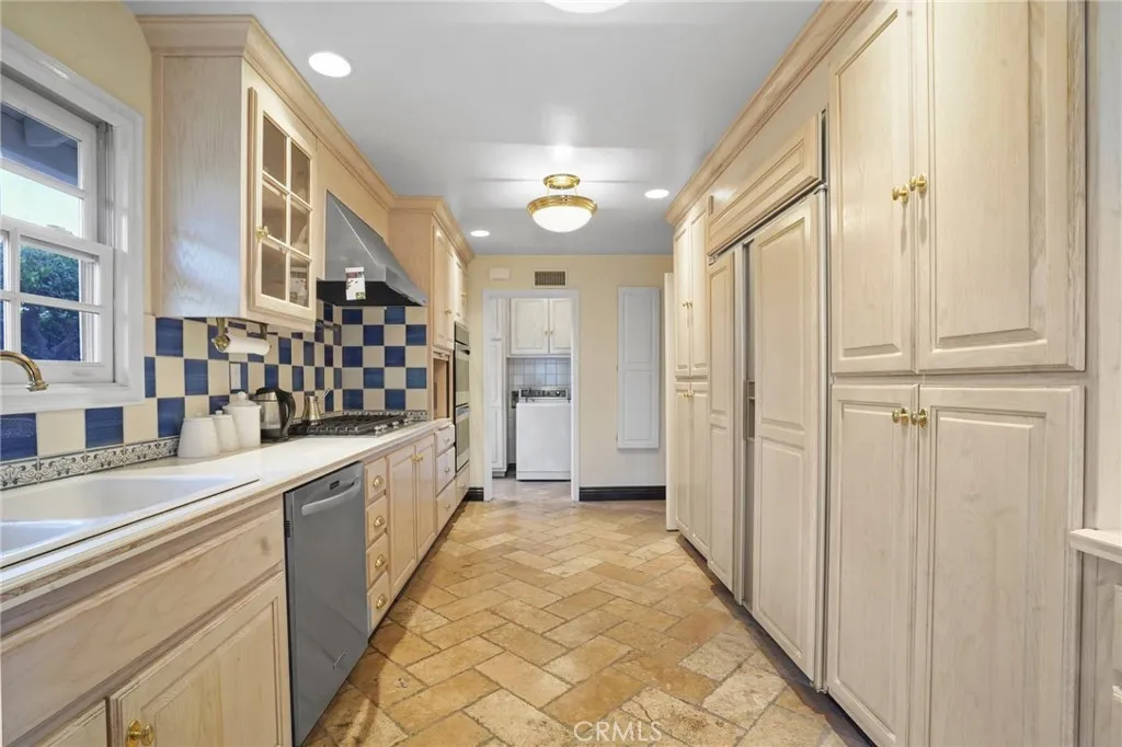 This stunning single-story home in Granada Hills offers the perfect blend of elegance and comfort. With 3 bedrooms and 2 baths, the home is set on an expansive 11,972 square-foot lot. Inside, the rich hardwood flooring flows seamlessly throughout, complementing the cozy ambiance created by the living room's beautiful fireplace and mantel. The living room opens to a spacious family room, complete with a second fireplace and views of the lush green backyard and garden. Adjacent to the family room is the bright and functional kitchen, featuring ample cabinetry with charming see-through glass doors, built-in appliances, a double oven, and a microwave. A generous dining area perfect for gatherings. The primary bedroom boasts his-and-her closets with built-ins and an ensuite bath with dual sinks, offering both style and convenience. Two additional bedrooms share a full hallway bath, making this home ideal for families or guests. A laundry area inside the home, equipped with a washer and dryer, adds to the convenience. Outside, the expansive backyard, providing plenty of outdoor space for relaxation and entertainment includes a large storage shed for tools, gardening equipment, or extra storage.