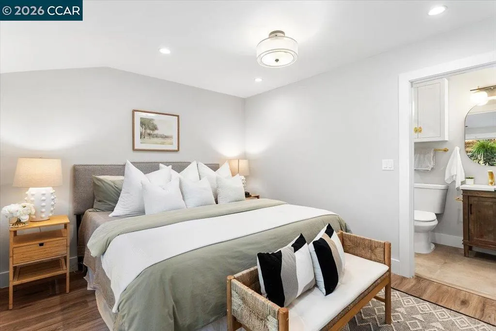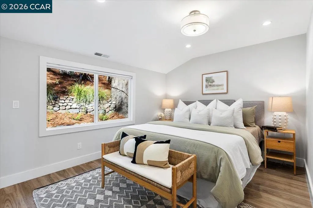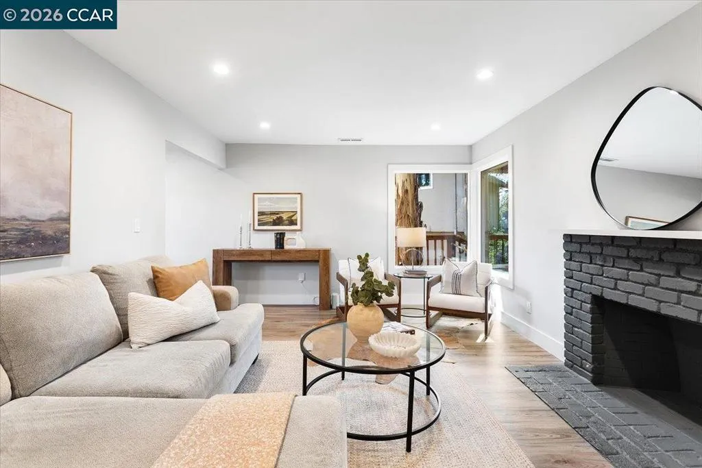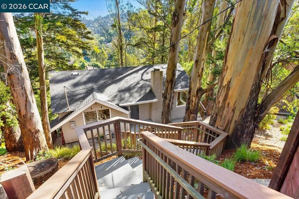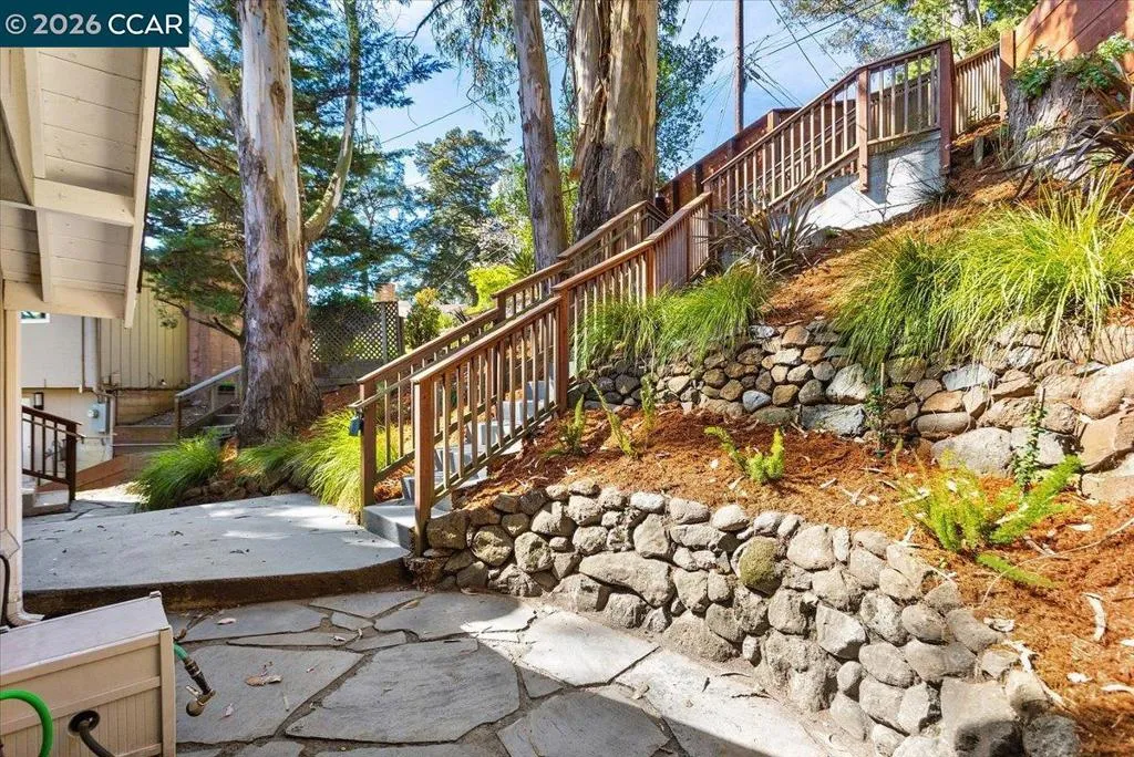 Enjoy modern comfort, peaceful surroundings, and the vibrant charm of Montclair living. Nestled in the Montclair Hills, this tastefully remodeled 2-bedroom, 2-bathroom single-story home is move-in ready. A charming, private front yard welcomes you, offering a peaceful setting complete with professional landscaping and an irrigation system. Inside, the beautifully updated kitchen features custom white oak cabinetry, quartz countertops, a full tile backsplash, a 5-burner gas range, and stainless steel appliances—perfect for everyday living. A spacious deck enhances the indoor-outdoor flow, where you can enjoy the peaceful natural surroundings—an ideal spot to start the day with a cup of coffee. Additional highlights include: a mantled wood-burning fireplace, modern bathrooms with designer fixtures and faucets, newer dual-pane windows (including a gorgeous picturesque window over looking the serene surroundings), durable stone composite flooring, stackable washer and dryer and numerous system upgrades including electrical, plumbing, and roof. 2 designated parking spots located in front of the property on Balboa for added convenience. Open Sat 3/21 12:30 - 3 & Sun 3/22 1-4