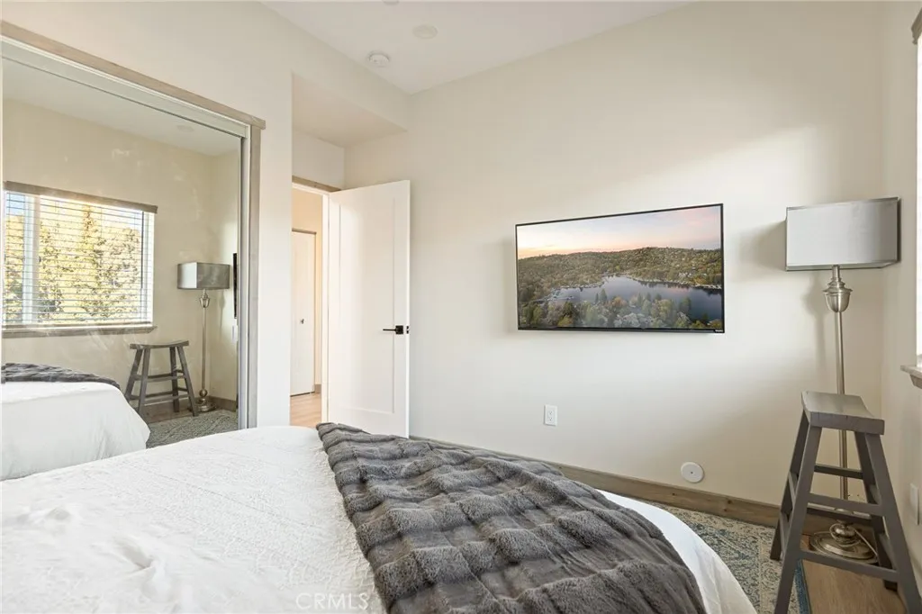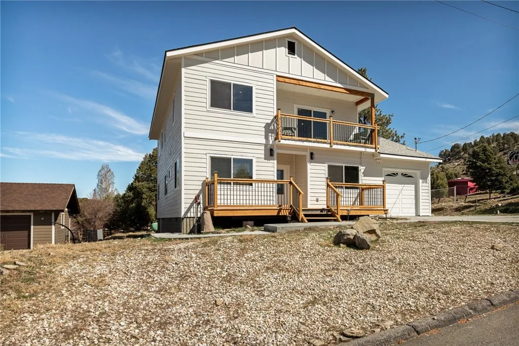 Welcome to your dream mountain retreat designed to comfortably accommodating large groups, making it a perfect gathering place for family and friends after a day of enjoying the lake, slopes, or trails. Nestled in the picturesque landscape of Big Bear, this stunning newer construction (2023) custom home offers tranquility and breathtaking mountain views, with spectacular sunsets painting the sky each evening. Featuring 5 bedrooms which includes an enclosed alcove/loft, at approximately 2379 Sqft with 3.5 baths this home comfortably accommodates large groups and vacation guests, making it an excellent second home or short-term rental investment opportunity. Step inside to discover a spacious and inviting interior filled with natural light and cozy warmth. The open floor plan seamlessly connects the living, dining, and kitchen areas, creating the perfect space for both relaxation and entertaining. Enjoy multiple outdoor living spaces including a front deck, expansive back deck, and upstairs balcony, ideal for taking in the peaceful mountain setting. Additional highlights include a bonus/game room, custom countertops, and furniture included for a turnkey experience, tankless water heater, fire sprinklers and fire-resistant siding for added safety, and an expanded driveway accommodating up to four cars plus a one-car garage. Unwind after a day of adventure in the jacuzzi/spa, perfect after skiing, hiking, or enjoying the lake. With flexible living and multiple sleeping areas, the home is ideal for large family gatherings, shared ownership, or a high-capacity vacation rental that can accommodate 12+ guests. Located in Big Bear City, just minutes from Big Bear Lake, ski resorts, hiking trails, and the Village, this home offers easy access to year-round recreation, from snow trips and lake days to hiking weekends and cozy evenings by the fire. Bonus Opportunity. The adjacent (similar size) lot is also available for purchase for an additional $50,000, offering potential for added privacy, expanded outdoor space, building a second home, or long-term investment. Whether you're looking for a vacation home, mountain retreat, or investment property, this home offers the perfect combination of space, comfort, and flexibility to create unforgettable mountain experiences.