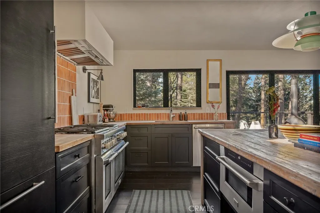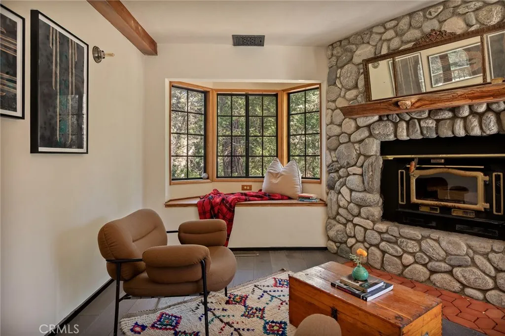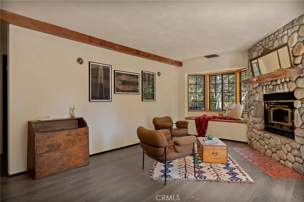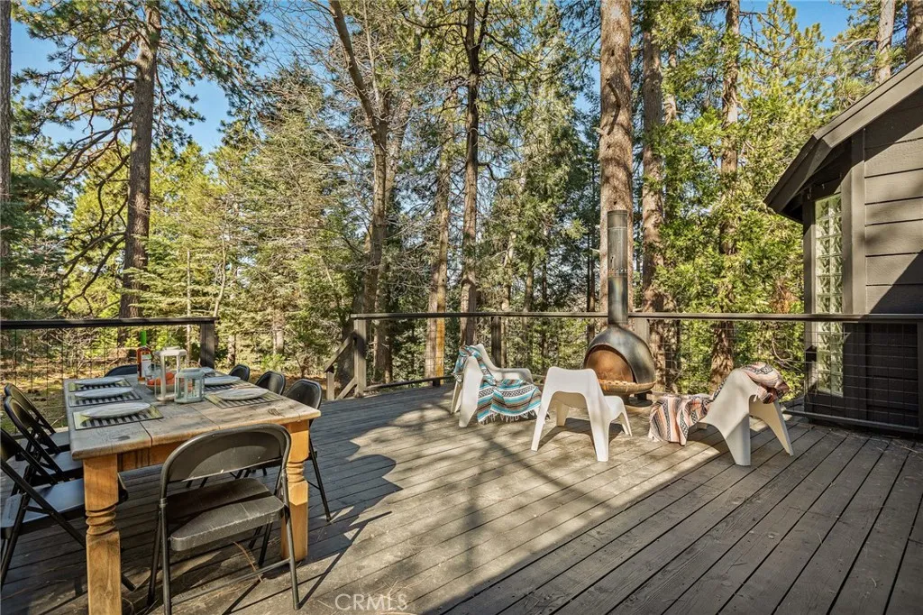 Have you been searching for that property that is off the main road, yet simple to access and has loads of privacy? Look no further, this home is located in the Burnt Mill Canyon Land Assoc. toward the end of the road surrounded by acres of greenspace, private trails and sits surrounded by soaring pines, Dogwoods and Oaks. This home has had a major re-invention and renovation. The current owner flipped the floors and dramatically opened up the top floor to make it the main entertainment attraction. The high ceilings, the open floor plan, and trifold doors allow you to enjoy the peaceful nature setting by exuding them nearly as one. The large deck is great for brining the entertainment outside, or just sitting with your favorite cuppa enjoying nature. On that main floor you will also find an office with the half bath, and a family room or potential 5th bedroom/ game room. The lower floor has 4 bedroom, one being the primary suite with double sinks, a soaking tub and shower, with Bay Window allowing the natural sunlight to flood in. And one is an on-suite bedroom with 3/4 bath. The entry will captivate you by the arched double door entrance, once inside you will find a sitting area with wood burning fireplace and bay window sitting area. There are multiple decks to enjoy, and some of the upgrades are, new tankless H2o heater, forced-air HVAC system and septic tank in 2022. Full-home PEX (plastic) re-plumbed, full electrical rewire and sub panel, EV charger hookup installed, solid wood flooring downstairs, Lime-washed walls throughout, Whole-home Kasa Smart system installed, all in 2024-2025. You are located in between the Lake Arrowhead Village and Hwy 18. This is a must see to appreciate, home can come furnished, inquire about furnishings.