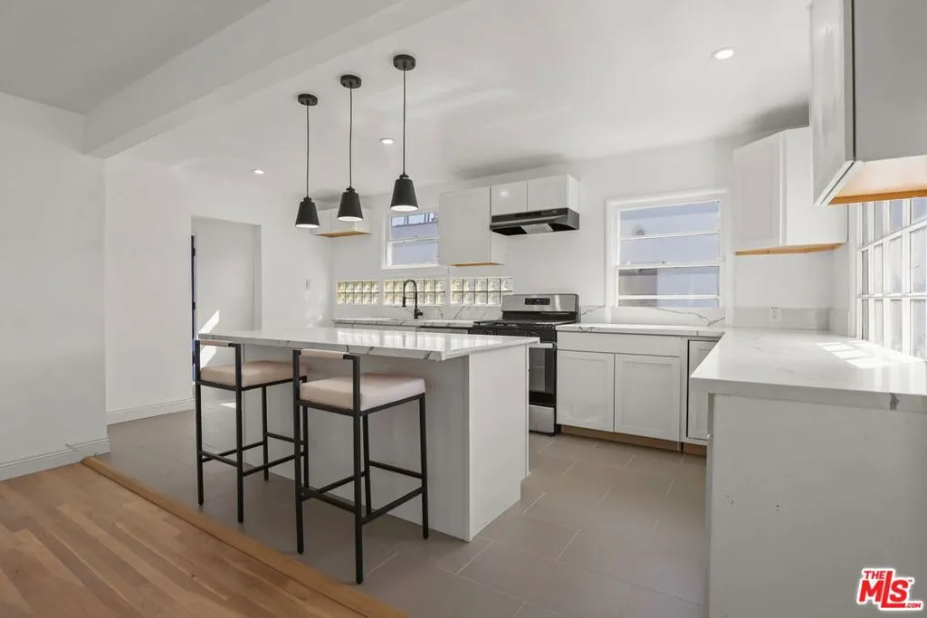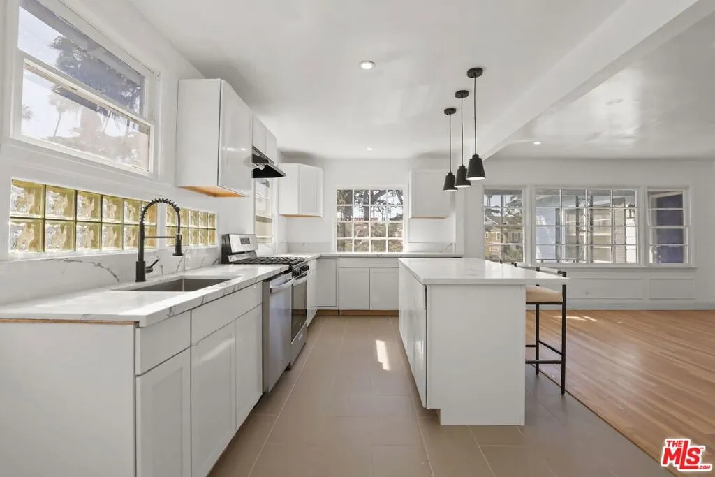 Welcome home to this bright and beautifully updated 3-bedroom, 2-bath upper duplex, ideally situated in the historic and highly sought-after Victoria Park neighborhood of Los Angeles. Offering 1,658 square feet of living space, this residence perfectly blends classic 1930s Spanish charm with modern upgrades for today's lifestyle. Flooded with natural light from large windows throughout, the home features a sun-filled, oversized living room with a decorative fireplace, creating an inviting space for relaxing or entertaining. Brand new hardwood floors and recessed lighting add a fresh, contemporary feel while preserving the home's vintage character. The brand new kitchen is both stylish and functional, showcasing stone countertops, a coordinating backsplash, and an impressive 6-foot island that opens seamlessly to the dining area. With a gas stove, abundant cabinetry, and generous counter space, it's designed to meet all your cooking and hosting needs.The spacious layout includes three well-sized bedrooms, highlighted by a private en-suite primary bedroom. Two additional bedrooms share a beautifully updated second bathroom, while both bathrooms have been fully renovated with modern finishes. Ample closet space throughout ensures plenty of storage. Additional features include central air and heat, in-unit laundry with washer and dryer, and both front and back entrances for added convenience.Nestled in one of LA's most charming residential pockets, Victoria Park is known for its tree-lined streets, architectural character, and strong sense of community. This central location offers easy access to Beverly Hills, Culver City, Century City, and Downtown Los Angeles. Just minutes away, you'll find Mid-Town Crossing, local markets, boutique shopping, and some of the city's best restaurants and cafesmaking everyday living both convenient and vibrant.This is a rare opportunity to enjoy timeless character, modern comfort, and an unbeatable location all in one.
