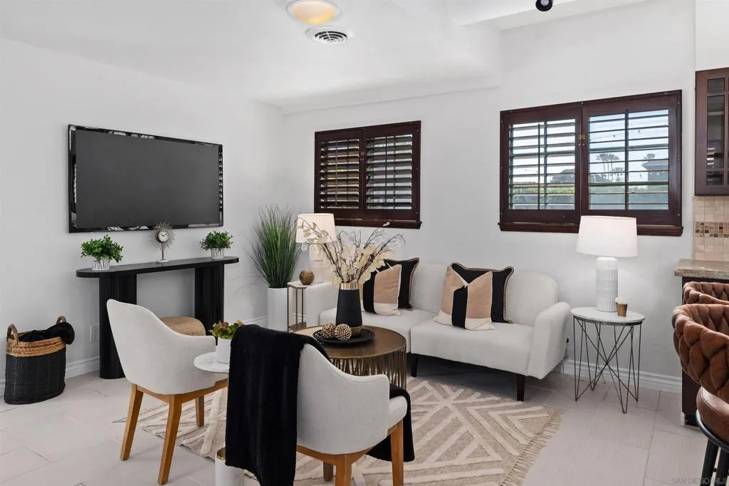 Highly desirable Braemar neighborhood of Pacific Beach, this inviting 3-bedroom, 2-bath coastal retreat offers approximately 1,897 sq ft of living space on a 3,100 sq ft lot. The thoughtfully designed floor plan features a spacious primary bedroom and a bright open-concept living and kitchen great room, creating the perfect setting for relaxed coastal living and effortless entertaining. A rare main-level bedroom and full bath provide flexibility for guests, a home office, or comfortable multi-generational living. Outdoor living shines with a private courtyard patio surrounded by mature landscaping and trees, offering a peaceful escape ideal for morning coffee, sunny afternoon lounging, or evening gatherings with friends. Additional highlights include a 2-car attached garage, roof replaced in 2023, and private gated entry that enhances both privacy and charm. Located just minutes from Pacific Beach, Mission Bay, vibrant cafes, restaurants, and boutique shops, this home places the best of the coastal lifestyle at your doorstep. Start your mornings with a walk along the sand, spend afternoons biking the boardwalk, and end the day enjoying ocean breezes and sunset dining nearby. A rare opportunity to own a spacious home in one of Pacific Beach’s most coveted coastal neighborhoods. Privately situated within the highly sought-after Braemar neighborhood of Pacific Beach, this spacious 3-bedroom, 2-bath coastal retreat offers approximately 1,897 sq ft of living space—an exceptional value for this prime beachside location. Set in a quiet, tucked-away setting, the home provides a rare sense of privacy and tranquility while still being just minutes from the vibrant coastal scene. Thoughtfully designed, the home features a bright open-concept living and kitchen great room, creating a seamless flow ideal for both everyday living and effortless entertaining. The generous primary suite serves as a peaceful retreat, complete with its own sitting area and ample closet space. A rare main-level bedroom and full bath offer flexibility for guests, a home office, or comfortable multi-generational living. Upstairs, additional flexible spaces provide room to work, relax, or create—enhancing the home’s versatility. Outdoor living is equally inviting, with a private courtyard patio and beautifully designed backyard oasis surrounded by mature trees and lush landscaping—perfect for morning coffee, weekend gatherings, or unwinding in a serene coastal setting. A side patio just off the kitchen adds convenient indoor-outdoor flow for casual dining and entertaining. Additional highlights include a rare 2-car attached garage—highly coveted in Pacific Beach—with room for vehicles, bikes, surfboards, and all your beach gear, along with a freshly painted exterior and newer roof. Located just minutes from Pacific Beach and Mission Bay, this home places you close to it all—morning walks along the sand, biking the boardwalk, and enjoying vibrant cafes, restaurants, and boutique shops—while still offering a quiet place to come home to. A rare opportunity to own a spacious, private home in one of San Diego’s most desirable coastal communities—where lifestyle, location, and value come together.
