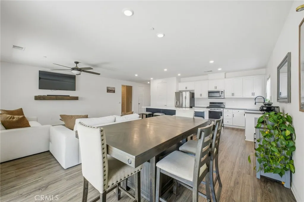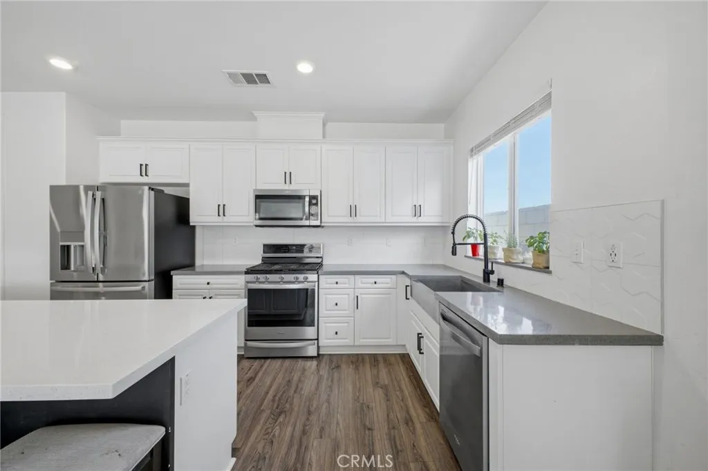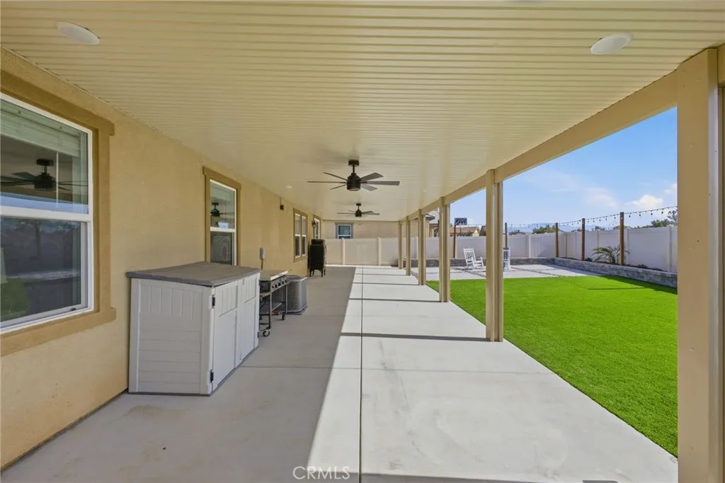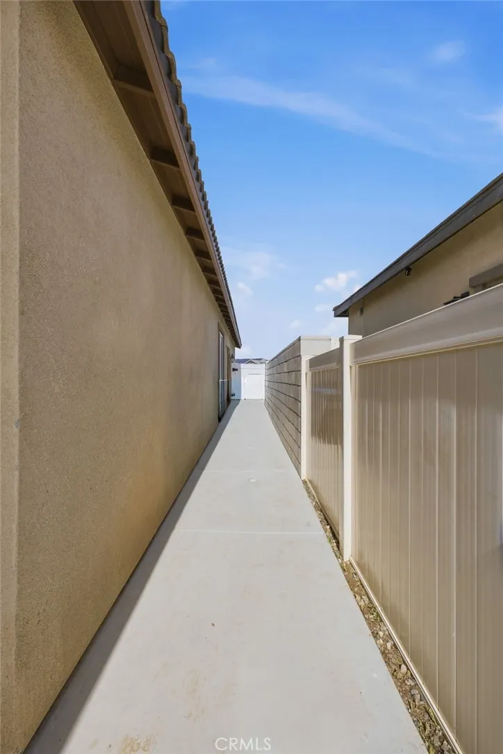 Better than brand new—practically just built! Welcome to 26459 Wreath Court, a beautifully turnkey home in the heart of Menifee, one of Southern California’s fastest-growing cities. Situated on not only a cul-de-sac, but on a premium corner lot with minimal neighboring properties, this home offers enhanced privacy, additional outdoor space, and a more open, airy feel— rare and highly desirable features! Featuring 3 bedrooms, 2 bathrooms, plus a versatile den/bonus room that can EASILY be converted and serve as a fourth bedroom, home office, or flex space—perfect for growing households. Step inside to an open-concept layout filled with natural light, soaring ceilings, and warm-toned vinyl flooring complemented by neutral designer touches and finishes throughout. An extra-wide hallway welcomes you in, setting the tone for the home’s spacious and inviting design. The chef’s kitchen is the heart of the home, showcasing quartz countertops, a farmhouse sink, stainless steel appliances, abundant cabinetry, ample pantry space, and a massive center island with bar seating. It flows seamlessly into the dining and living areas, creating an ideal space for both everyday living and entertaining. Additional highlights include a dedicated indoor laundry room, Wi-Fi smart thermostat, energy star home and a 2-car garage that you MUST SEE, offering excellent storage and functionality. Step outside to your private, newly landscaped backyard retreat, thoughtfully designed for both relaxation and entertaining. Enjoy BRAND NEW low-maintenance turf, clean walkways, floating concrete pavers and planter beds ready for a garden or fruit trees. The standout feature is a massive covered patio structure with recessed, lighting and not one but THREE smart ceiling fans with WiFi/Bluetooth enabled capability, perfect for year-round enjoyment. A designer/modern gated side yard/dog run and vinyl fencing add both versatility and privacy. Ideally located near parks, schools, shopping, and major commuter routes, this home is just minutes from the Menifee Town Center, Temecula Wine Country, and conveniently positioned between the 15 and 215 freeways. Move-in ready and designed for modern living—this is a home you don’t want to miss!