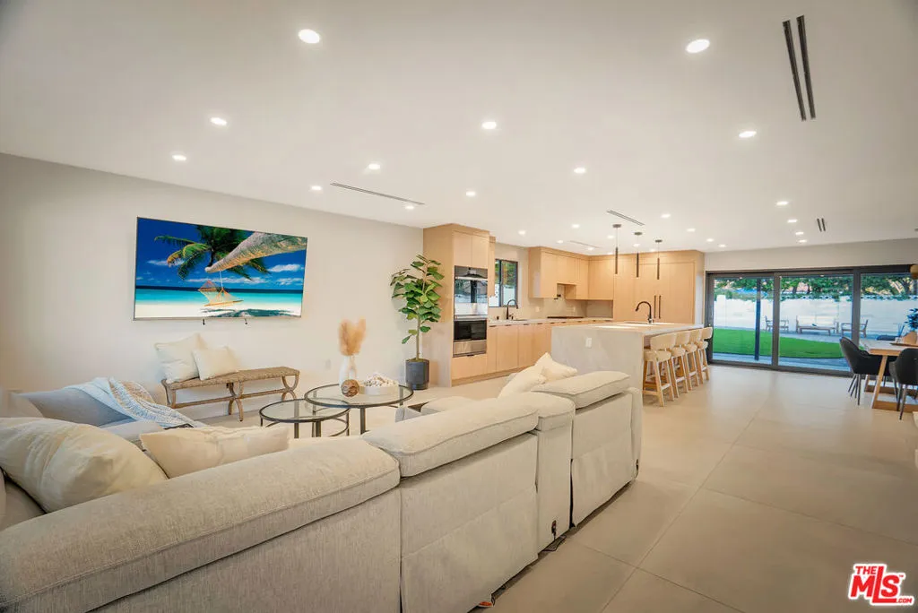 Welcome to one of the most beautiful homes in West Hills. This completely remodeled and thoughtfully redesigned 4-bedroom, 2-bathroom residence is situated on a highly sought-after, quiet, tree-lined street. Blending modern style with everyday functionality, the home offers stunning open-concept layout filled with an abundance of natural light. At the heart of the home is a custom-designed kitchen featuring brand-new high-end appliances, sleek custom cabinetry, and a striking waterfall island that anchors the space, perfect for both everyday cooking and elevated entertaining. The seamless flow between the kitchen, dining, living, and outdoor areas creates an inviting environment ideal for gatherings of any size. Step outside to a private entertainer's backyard designed for year-round enjoyment. Highlights include a covered patio great for outdoor dining and lounging, a sparkling pool, and a low-maintenance synthetic grass yard, all enhanced by ambient lighting that transforms the space into a warm and inviting evening retreat. The property also features a huge front yard and a spacious paved driveway, offering ample parking for multiple vehicles. The home has been extensively upgraded with newer windows, doors, HVAC, plumbing, electrical panel, LED lighting, flooring, and much more. Adding incredible versatility and value is the detached 1-bedroom, 1-bathroom ADU ideal for extended family, guests, a home office, or income-producing potential. Located just minutes from top-rated schools, parks, shopping, dining, and convenient freeway access, this exceptional property offers the perfect combination of comfort, style, and flexibility in one of West Hills' most desirable neighborhoods