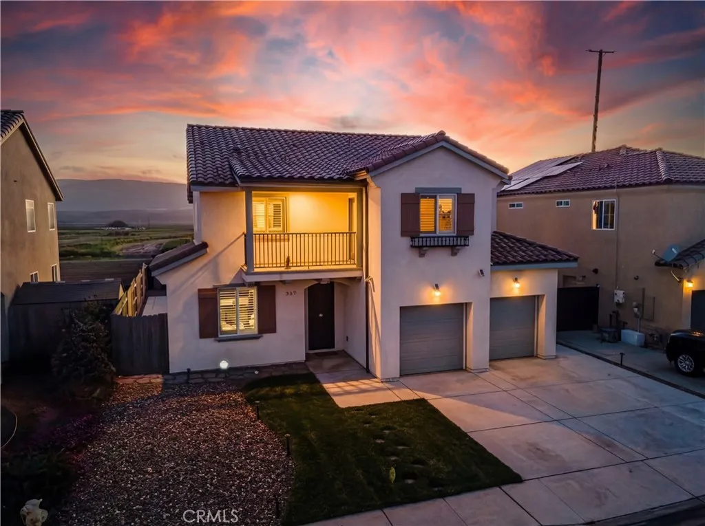 Experience the best of the Central Coast in this stunning Paseo Plan 2 home, located in the highly desirable Pasadera neighborhood of Guadalupe. This residence offers a spacious and versatile layout ideal for modern living, multigenerational households, or a high-end work-from-home setup. Thoughtfully designed, this two-story home maximizes every square foot of its 1,963+ square feet of living space. The bright open-concept great room and kitchen create a welcoming central hub for everyday living and entertaining. Downstairs, a den located near a full bathroom and laundry area offers excellent flexibility as a home office, guest space, or potential 4th bedroom. Upstairs, you’ll find three spacious bedrooms and a well-planned layout that provides both comfort and functionality. The oversized primary suite is a true standout, featuring a private exterior balcony—perfect for enjoying your morning coffee and the fresh coastal air. Step outside to enjoy a covered backyard patio, a large perimeter lot, and a low-maintenance outdoor space designed for easy living and entertaining. The backyard also offers a great entertaining area, making it ideal for gatherings or relaxing at home. This home is further enhanced by owned solar with battery backup and an owned water treatment system, adding both efficiency and convenience. Enjoy the quiet small-town charm of Guadalupe while being just minutes from Rancho Guadalupe Dunes Preserve and the Pacific Coast Highway. No HOA and no Mello-Roos.