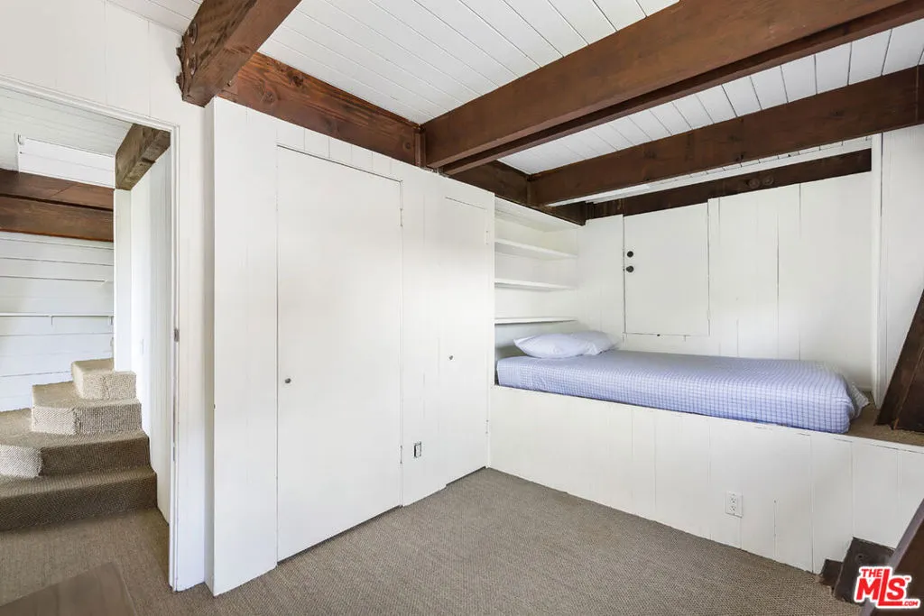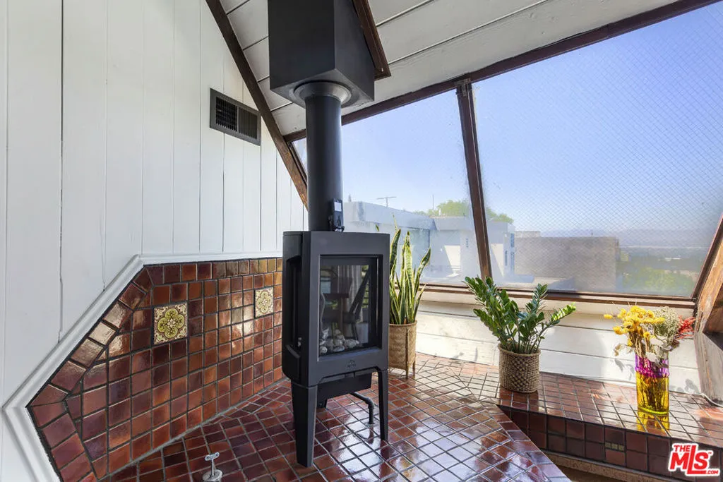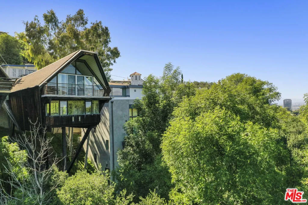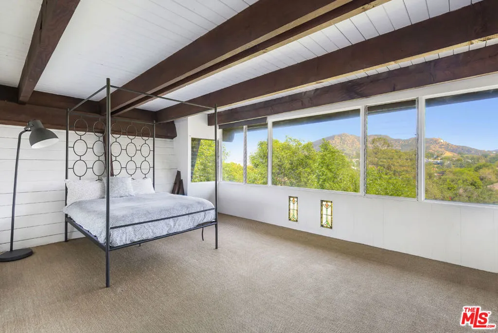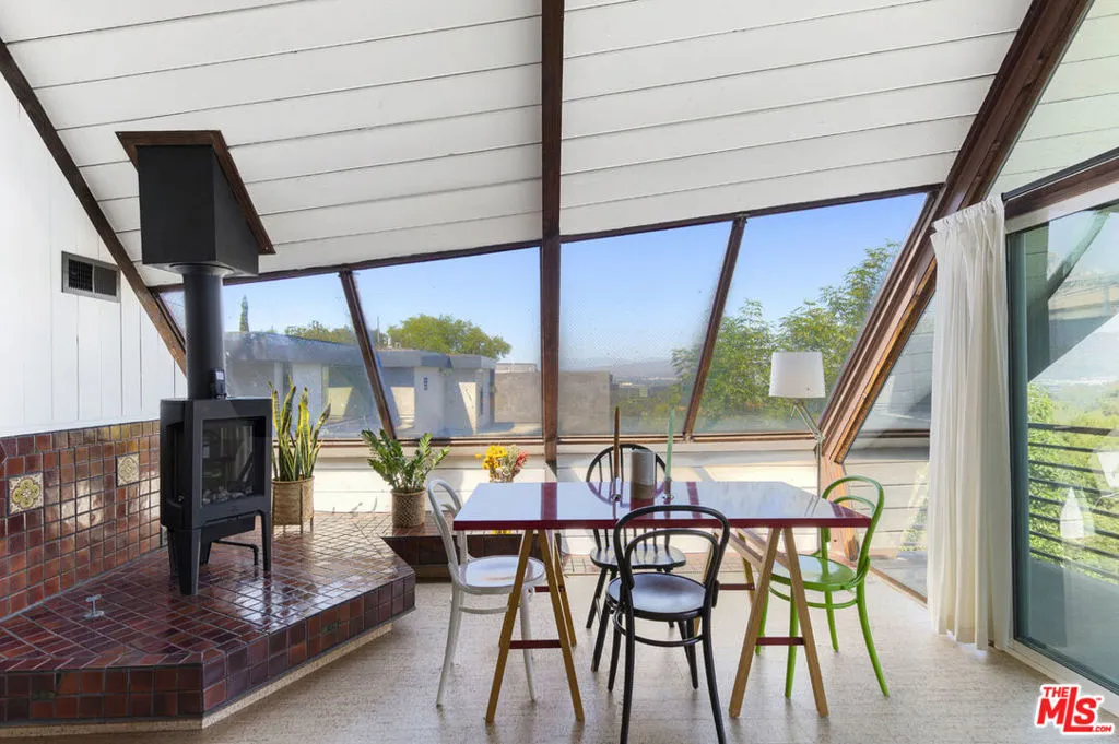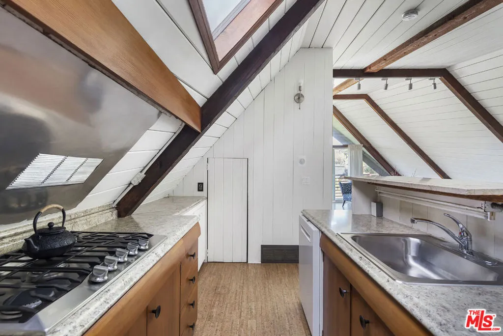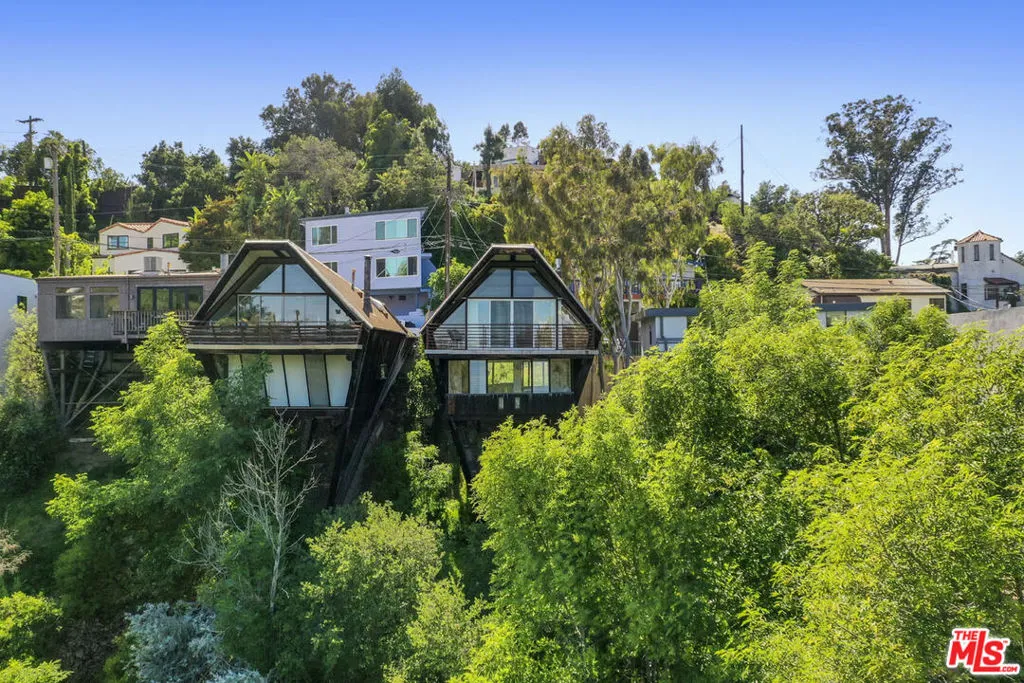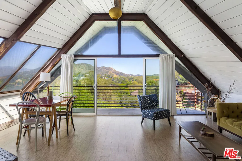 Available for lease, a rare opportunity to live within iconic architecture in the Hollywood Hills. This "Boat House" by architect Harry Gesner was crafted in 1959 by Norwegian shipbuilders, one of eight such residences floating above the treetops in a peaceful canyon setting. Massive windows and sliding doors bring sunshine throughout the day along with a spectacular panorama of verdant hillsides, twinkling lights and the Hollywood Sign. Midcentury architectural details abound including open beams, exposed wood, cork flooring and a unique fireplace. Two bedrooms and an office loft provide everything you need for life-work balance; closet space is ample and the bath has been updated. Enjoy seamless access to the deck where morning coffee and evening cocktails will taste sublime. Amenities include a dishwasher, laundry, central heat+air and covered parking. Sequestered from the city you are just minutes from coffee, dining and services in nearby Hollywood, Toluca Lake and Studio City.