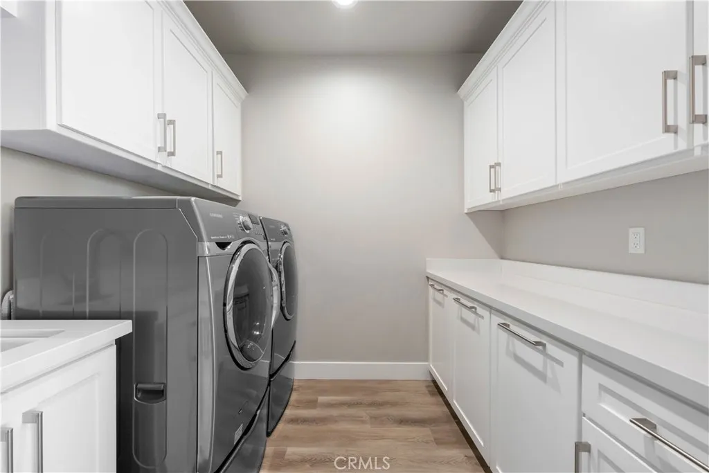 New build in 2021, this stunning modern single-story home offers hillside, mountain & ocean views with exceptional indoor-outdoor living. Designed with high ceilings, abundant natural light, and an open-concept layout, the home features a split floorplan with 4 bedrooms & 3 full baths—two bedrooms & 2 baths on one side & two bedrooms & 1 bath on the other for ideal privacy & flexibility. All bedrooms with ample storage closets. The gourmet kitchen is thoughtfully designed for both everyday living & effortless entertaining, offering abundant prep space & expansive quartz countertops accented by a stunning glass tile backsplash that adds depth & sophistication. Contemporary pendant lighting & sleek floating shelves enhance the kitchen’s modern aesthetic, creating an open & inviting atmosphere. Premium appliances include a built-in Sub-Zero refrigerator/freezer, a commercial-grade KitchenAid 6-burner range with double oven, grill, dishwasher & a built-in wine & beverage refrigerator. An expansive quartz island with a breakfast bar provides generous seating, along with ample storage. Completing the space is a large walk-in pantry featuring built-in drawers, pull-outs & shelving for exceptional organization & functionality. The spacious dining area, open to the kitchen, enjoys beautiful eye-catching views. The great room showcases a stacked stone fireplace, recessed lighting, ceiling fan & sliding doors to a covered patio for seamless indoor-outdoor living. Large windows capture backyard & view vistas from the great room, kitchen, dining area, and primary suite. The spacious primary suite includes patio access, hillside views, dual vanities, soaking tub, frameless glass walk-in shower w/tessellated tile & a large walk-in closet with built-ins. Resort-style backyard is an entertainer’s dream featuring a raised view deck with private spa, built-in fire pit w/seating, fully equipped outdoor kitchen (BBQ, burner, sink, refrigerator), bar seating for 4 & a covered patio w/ceiling fan & recessed lighting. Additional highlights include a private outdoor flex space (office/gym/studio), large rooftop deck, with panoramic views, raised garden beds, citrus trees, rain barrels, irrigation system, outdoor storage & exceptional entertaining spaces. Modern upgrades include: tankless water heater, HVAC, water softener, 3 Ring cameras, deluxe vinyl plank flooring, recessed lighting, spacious laundry room, & an oversized, deep 2-car garage with extensive storage.
