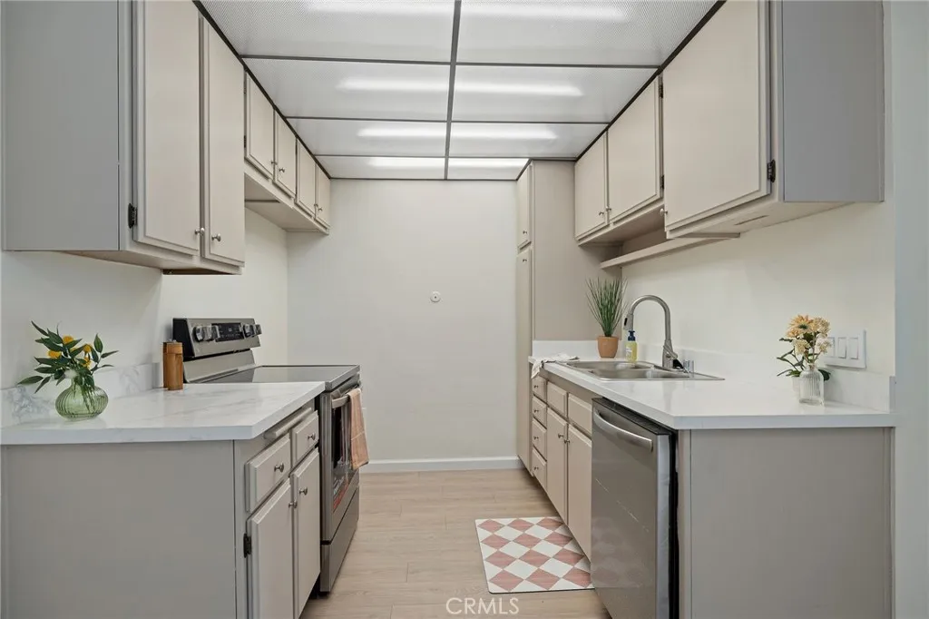 Welcome to this beautifully updated condo in the gated community of Ponderosa Pines! This desirable downstairs corner unit offers exceptional privacy, easy access, and abundance of natural light, creating a bright and inviting atmosphere throughout. Recently remodeled, the home features a modern kitchen with a brand-new range and dishwasher, along with a functional layout perfect for everyday living. The spacious living room opens to a private patio, ideal for relaxing or entertaining. The generously sized bedroom includes a large walk-in closet, with additional space that offers the potential for in-unit laundry hookups. The unit also includes two assigned covered parking spaces—one conveniently located directly in front of the unit and a second near the front gate. Residents enjoy inviting amenities including a private pool, spa, and a well-maintained community laundry facility, all within a secure, gated setting. Ideally located near the 405, 110, and 91 freeways, this home is just minutes from LAX, SoFi Stadium, beaches and a wide variety of shopping, dining, and everyday conveniences. Don’t miss this move-in-ready opportunity offering comfort, convenience, and an excellent location!