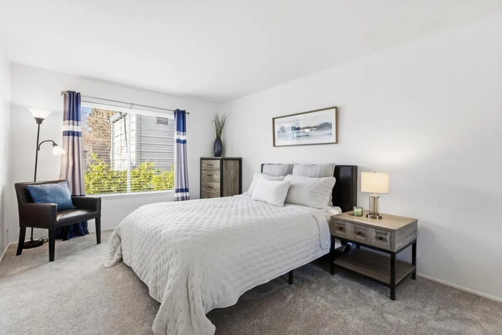 Welcome to a hidden oasis in the heart of Mountain View. This beautifully positioned condo offers a rare blend of tranquility, natural beauty, and unbeatable Silicon Valley convenience. Step inside to discover a bright and airy open layout featuring vaulted ceilings and a cozy fireplace, perfect for relaxing evenings at home. The living space flows seamlessly onto a private waterfront balcony overlooking the community serene ponds and mature trees, creating a peaceful retreat where you can enjoy morning coffee or unwind after a busy day. The well designed floorplan offers both comfort and privacy, making it ideal for daily living and entertaining. The spacious primary suite serves as a peaceful retreat with its own en suite bathroom, while the second bedroom and full bathroom provide flexibility for guests, a home office, or a roommate setup. Life at The Waters feels like a private resort. Enjoy beautifully landscaped grounds along with community amenities including a swimming pool and hot tub, all designed to encourage relaxation. Perfectly situated in one of Mountain View's most convenient locations, the home is minutes from Caltrain, major tech campuses, Shoreline, parks, restaurants, and vibrant downtown Mountain View, with easy access to 101 and 85 for effortless commuting.