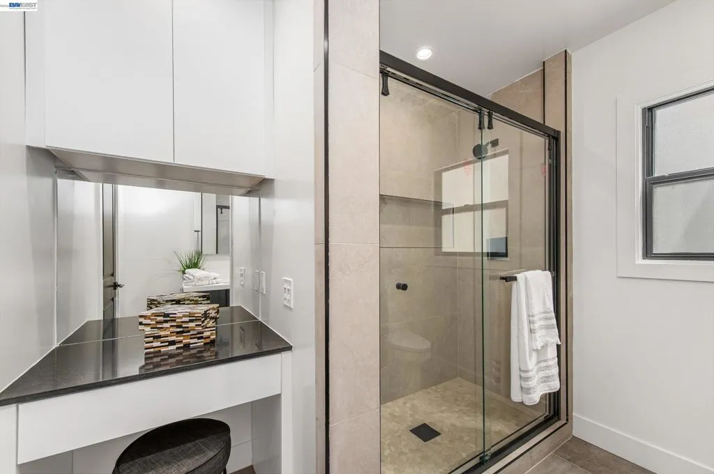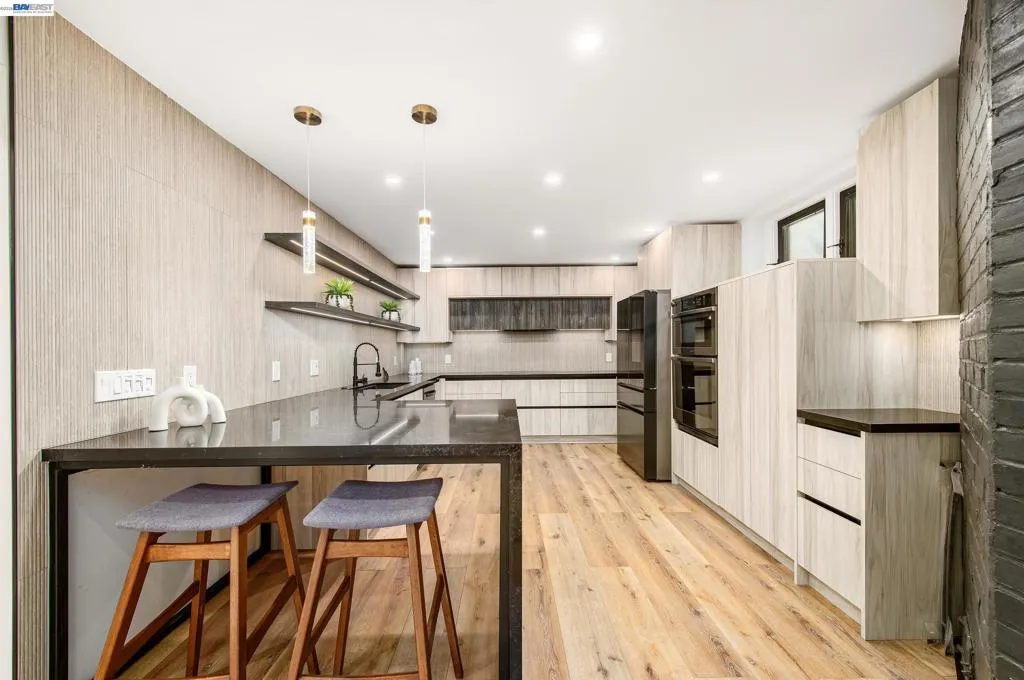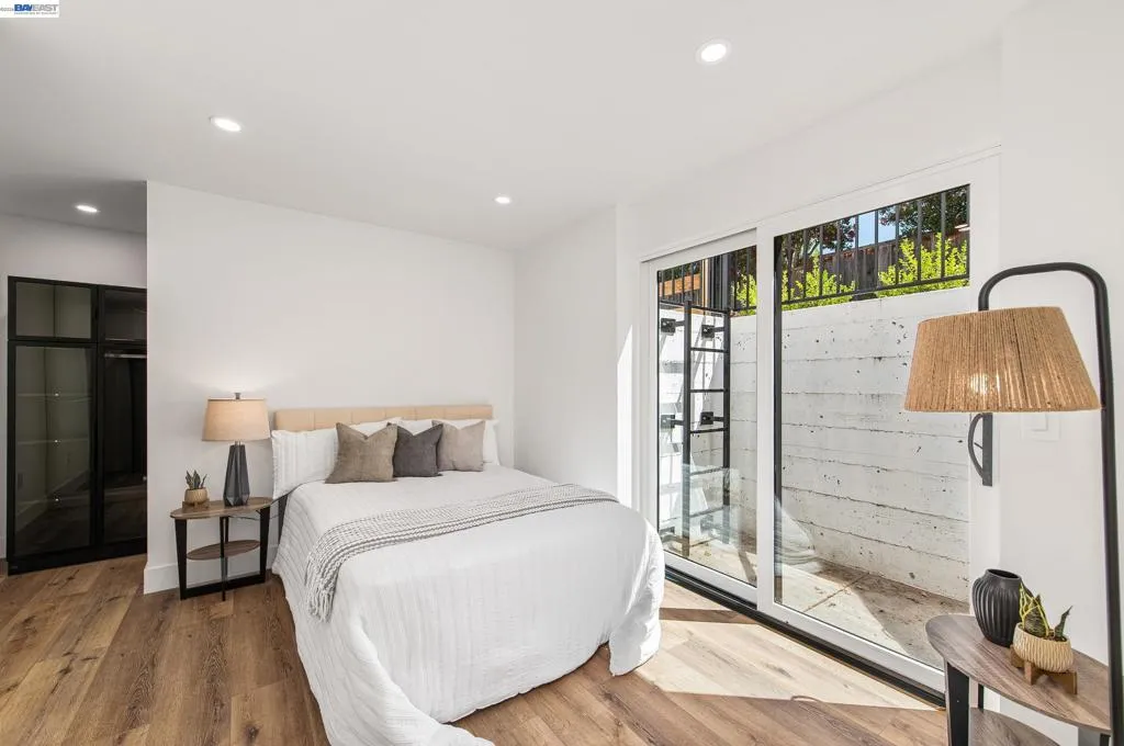 Completely updated in 2025, this artfully reimagined home in Downtown Pleasanton blends modern European design with open-concept living and high-end finishes throughout. Expanded to 3,440 sq ft, it features a custom kitchen with quartz waterfall island, sleek black appliances, and a spacious primary suite with soaring ceilings, linear fireplace, and French doors to the backyard. Two additional bedrooms share a stylish full bath, and a spacious utility room sits just past the kitchen. The finished lower level, built to current ADU specs, includes a full kitchen, dining and living areas, two bedrooms, a full bath, a private entrance, and interior access—ideal for multi-generational living, long-term guests, or investment potential. Separate electrical meters and shared HVAC system provide flexibility. The drought-tolerant front and back yards include a three-hole putting green and space to relax or entertain. Detached two-car garage with modern glass door and epoxy floors can serve as a garage or versatile flex space, perfect for a game room, studio or workshop. All just blocks from downtown Pleasanton. Open House Saturday/Sunday March 21-22 1-4pm.
