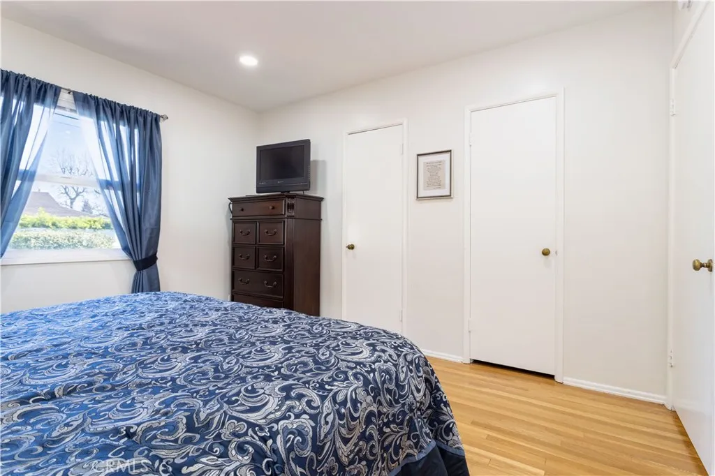 First Time Ever on the Market! Charming 3 Bedroom Pool Home with Timeless Appeal. Welcome to this stunning 3 bedroom, 2 bath pool home that exudes character and undeniable charm. Boasting incredible curb appeal, a stately magnolia tree, and a distinctive red ribbon driveway leading to an attached 2 car garage, this home makes a memorable first impression. A brick walkway and patio guide you to the inviting front door. Step inside to a bright and open living room, where original hardwood floors and large double pane windows fill the space with natural light. Exposed beams complement the brick fireplace, a unique feature that also doubles as a backyard BBQ. All bedrooms are generously sized, including a versatile convertible bedroom with wood paneling, a display ledge for art, and a full closet. The primary suite features his and hers closets and ample room to unwind. Bathrooms include a remodeled full bath with tub, a glass enclosed shower, and updated countertops, plus a convenient half bath for guests near the entry. LED lighting throughout adds a modern touch. The kitchen, lovingly maintained, showcases warm knotty pine finishes, abundant counter space, built in display shelves, and a cozy breakfast nook perfect for a bench seat. Enjoy seamless indoor outdoor living with doors from both the dining area and kitchen that open to your private backyard retreat. Relax by the sparkling pool and jacuzzi, surrounded by fruit trees and plenty of space for lounging, storage, or a lush vegetable garden. Upgrades include plumbing, sewer line, newer HVAC system, dual pane windows, newer roof, pool plaster & pump, and fresh paint inside and out. This home has truly been cared for by the original owners and is move in ready. A rare gem that has never before been on the market, this property combines timeless style, comfort, and outdoor enjoyment. Experience the best of North Hollywood/Valley Village living in this exceptional residence. It is conveniently located near major freeways, a new Target, and the newly built NoHo West Development, which includes Trader Joe’s, Nordstrom Rack, LA Fitness, Ulta, Urbane, California Fish Grill, and more. Don’t miss your chance to make it your own!