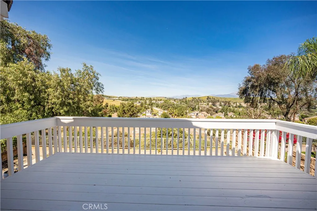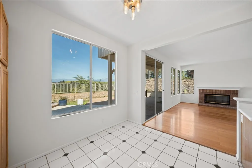 Two-story home in Chino Hills featuring 5 bedrooms and 3 bathrooms with an open floor plan and high ceilings. Living room connects to the dining area, creating a continuous layout for gatherings. Kitchen includes an eating area and opens to the family room with fireplace and sliding door access to the backyard. Main floor bedroom and full bathroom provide flexible use for guests or workspace. Interior updates include fresh interior paint, new carpet, and recessed lighting. Upstairs primary suite includes double door entry, walk-in closet, dual sinks, separate tub and shower, and direct access to a newly rebuilt balcony. Additional upstairs bedrooms and full bathroom include dual sinks. Balcony and backyard overlook hillside and mountain views with no rear neighbors. Backyard features patio space, paver hardscape, and low-maintenance landscaping with open views. 3-car attached garage with direct access. Located near parks, shopping, and freeway access.