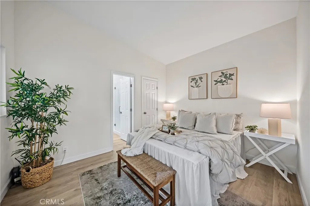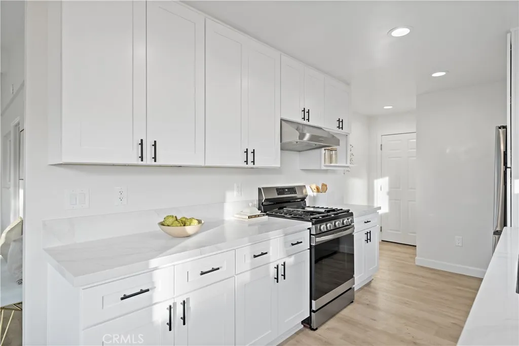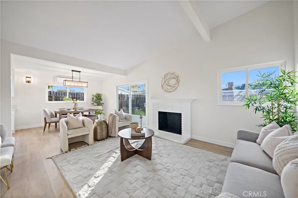 Single-story 4-bedroom, 2-bath home situated on a 6,209 sq. ft. lot with extensive recent upgrades throughout. The interior features an open concept dining and living room area with vaulted ceilings, recessed lighting, a cozy fireplace, and sliding glass door access to the backyard. Recent upgrades include a completely remodeled kitchen with quartz countertops, kitchen sink, shaker-style cabinetry, new stainless-steel appliances, open flow to the dining area, and garage access for a washer and dryer. Both bathrooms were upgraded with a new bathtub or shower stall, commodes, and sinks. With new laminate flooring, new interior and exterior paint, and lighting fixtures throughout this home is move-in ready. Major system upgrades include a new roof, a 200-amp electrical panel, water heater, and a ductless heating and cooling system. The exterior features an extended driveway leading to a 2-car attached garage with direct access, a fenced backyard with a grass area and concrete patio. This property is located in a residential area close to parks, schools, shopping, dining and freeway connections.