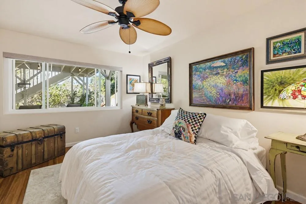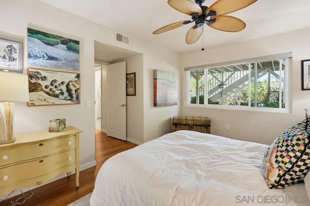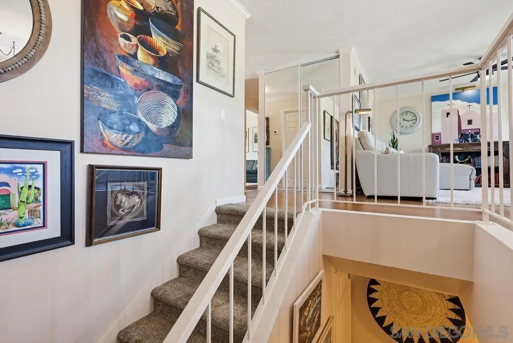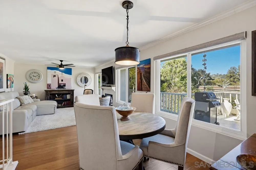 Located in the coveted Stonehaven community of Bay Ho, this 3 bed, 2 bath home offers 1,548 sq ft with a flexible multi-level layout and central San Diego location with convenient access to coastal amenities and beaches. The main level includes a bedroom and full bath, with two additional bedrooms and full bath on the lower level, offering separation of space and functional living. The updated kitchen features granite countertops and stainless steel appliances, with updated bathrooms throughout. Interior details include bamboo flooring, crown moulding, dual pane windows and sliders, and ceiling fans. Outdoor living includes an elevated deck with sunset views and a lower-level fenced yard with fire pit, creating an ideal setup for outdoor dining and entertaining. Additional features include owned solar (approx. 3 years old), a new water heater, and a 2-car attached garage with direct access. Stonehaven amenities include a community pool and spa, tennis courts, playground, ponds with koi fish and fountains, and walking trails throughout the neighborhood. Stonehaven is a tucked-away community with mature landscaping and amenities that create a resort-style setting. Located near Tecolote Canyon Natural Park and a short drive to Mission Bay and local beaches, with convenient access to shopping, dining, University of San Diego, and I-5 and I-8.