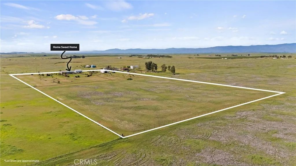 Tucked away in a quiet rural setting, this agricultural paradise begins revealing itself the moment you turn onto the gravel road, that winds toward the property. The turnkey 10-acre country estate offers modern luxury, privacy, and panoramic views. The premium, well-maintained 3-bedroom, 2 bath manufactured home on a permanent foundation, features vaulted ceilings, abundant natural light, a fire-suppression system, and a functional floorplan. The gourmet kitchen blends functionality and elegance with newer stainless-steel appliances, abundant granite surfaces, a large island, and generous wood cabinetry. The space flows seamlessly into the open living and dining areas, making it ideal for entertaining. The spacious primary suite features a private bathtub, a walk-in shower, and dual sinks. Additionally, there is a versatile nearby (BONUS) room that is perfect for an office, nursery, or hobby space. A thoughtful split floor plan ensures privacy for guests and family, while the home's premium construction and abundant upgrades, provide durability and efficiency for years to come. The outdoor living shines with multiple inviting entertaining areas, including a comfortable seating space, a pergola-covered BBQ area, and a hot-tub-ready covered patio, that captures sweeping panoramic mountain views. The property features a thoughtfully curated landscaped backyard, where an expansive green lawn is framed by seasonal flowers, berries, and graceful grapevines for a truly garden-inspired retreat. The grounds also host over 45 producing fruit, nut, and olive trees, alongside raised vegetable gardens. The entire area is serviced by automatic sprinkler and drip irrigation systems. Five acres are fenced, ideal for livestock or 4-H projects. A hobbyist’s dream, the property includes a 24' x 36' well-lit shop with high-clearance doors, built-in shelving, and workbenches, plus a detached 24' x 30' garage with extensive metal shelving. Every detail of this premium-built home and acreage has been thoughtfully designed to offer a refined, turnkey lifestyle experience surrounded by privacy, beauty and wide-open spaces. Only about eight miles west of I-5 and Corning, your new home awaits.