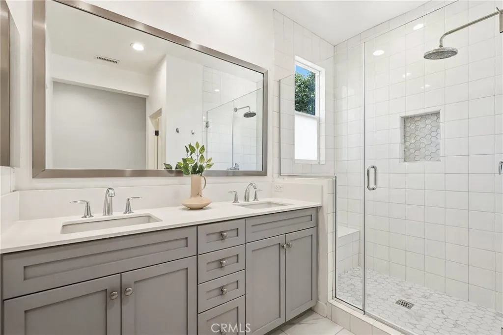 Welcome to this stunning all-electric 2018 tri-level home offering 1,748 square feet of modern living, complete with owned solar panels and thoughtful upgrades throughout. This end unit with only one shared wall is set back within the community away from street traffic. A charming and peaceful front porch and additional patio create the perfect setting for relaxing or entertaining guests. The first level features direct access to the spacious two-car garage with epoxy-coated garage floor, along with a bright and versatile bedroom—ideal for a home office or guest space—plus a bathroom. Upstairs, the main living area is filled with natural light and enhanced by recessed lighting, creating a warm and inviting atmosphere. The open-concept living and dining areas flow seamlessly and offer direct access to a private balcony—perfect for enjoying your morning coffee or hosting gatherings. The chef’s kitchen is a true highlight, featuring a large center island, sleek white countertops, 6-burner induction range, and stainless steel appliances. This level also includes an additional bedroom and full bathroom. The third floor is dedicated to comfort and privacy with two primary suites. The first primary offers plush carpeting, en-suite bathroom, and a walk-in closet. The second primary suite serves as a true retreat, complete with a dual-sink vanity, glass-enclosed shower, private water closet, and a generous walk-in closet. A convenient laundry room completes this level. Additional upgrades include EV charging capability. Residents of the desirable Harbor Collection community enjoy access to resort-style amenities, including BBQ areas, a bocce ball court, playground, and sports court. Ideally located near shopping, dining, and everyday conveniences, this move-in-ready home offers the perfect blend of comfort, style, and location. Come see this gorgeous home today - it won't last long!
