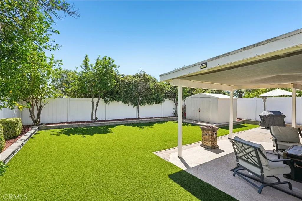 This stunning two-story home in Central Murrieta combines modern upgrades with a functional layout perfect for dual-living arrangements. Boasting exceptional curb appeal with an inviting front porch, the entry opens into a formal living and dining area featuring soaring cathedral ceilings, updated lighting, and contemporary vinyl plank flooring throughout the main level. The heart of the home is a remodeled cook’s kitchen, complete with quartz countertops, an eat-in island peninsula, and updated white cabinetry. It features a large single-basin sink, black stainless steel appliances, a tile backsplash, and recessed lighting. The kitchen flows seamlessly into the family room, which is anchored by a cozy fireplace and ceiling fan, with French doors leading to the backyard. Convenience is key with a downstairs bedroom featuring double-door entry and an adjacent fully updated bathroom boasting a new vanity, quartz counters, and a modern tile walk-in shower. Upstairs, you will find dual primary suites: Suite #1 Offers a walk-in closet and a beautifully remodeled bathroom with a custom tile shower, white vanity, and updated fixtures. Suite #2 (the true primary): An expansive retreat with an extra-large bedroom and walk-in closet. The spa-like ensuite features two new white vanities, framed mirrors, a huge walk-in glass shower, and a separate soaking tub. The exterior is designed for easy living with a covered patio, low-maintenance astro-turf, like new vinyl fencing, and a large storage shed. Located near top-rated Murrieta schools, shopping, and freeway access, No HOA and LOW TAXES! This move-in-ready gem is waiting for you!