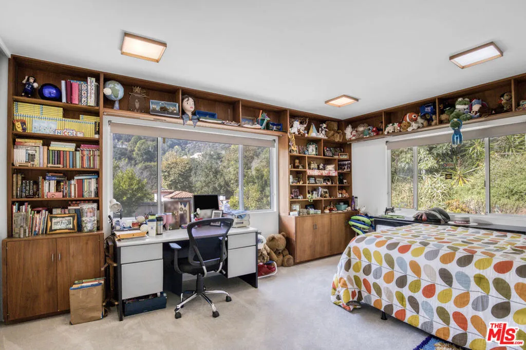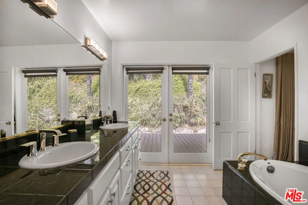 A must see! Gated in lower Bel Air, this unique, serene 3-acre property is tucked far back from the street by a long private drive. The large flat lawn, patio, and deck areas are surrounded by pine and citrus trees, offering a rare combination of total privacy, scale and natural beauty. The extensive outdoor patio entertaining area is equipped with heaters and fans, a built-in barbecue and refrigerator. The recently remodeled bright grand room and dining area has a fireplace, bar with wine refrigerator, and a 15-foot bifold glass door providing an expansive indoor-outdoor living feel. The kitchen is well equipped, including an indoor grill and warmer, and has an eating area that overlooks the lush backyard. The 1st floor primary en suite bedroom has a vaulted ceiling, jacuzzi bath, and private deck/garden. 3 additional bedrooms on the main floor plus a den area all have garden or canyon views. Upstairs is an additional large bedroom & bathroom, with potential use as a gym, studio, or guest room. The attached 2 car garage, with direct access to the home, has a work bench, storage loft, and 2 EV charging ports. There is additional parking for 5 cars within the gated area. The house is equipped with a security system and a sound system. The central heating and air conditioning systems, irrigation system, and electric gate can be controlled remotely. The property offers a convenient location to excellent schools, and is ideally located for easy access to UCLA, Beverly Hills, Santa Monica and the San Fernando Valley.