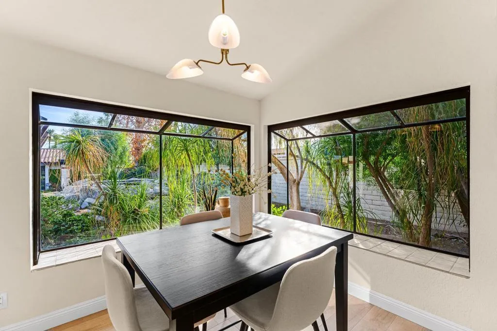 Extensively remodeled unfurnished long-term rental located in the prestigious gated community of Los Lagos in Indian Wells. This beautifully updated residence offers approximately 2,448 sq ft of open living space with vaulted wood-beamed ceilings and an upgraded fireplace with custom concrete finish. The home features upgraded appliances, custom kitchen cabinetry, updated flooring, fresh interior paint, remodeled bathrooms, and contemporary fixtures throughout. Enjoy serene lake and waterfall views from the kitchen, living room, den, and primary bedroom, creating a peaceful indoor-outdoor living experience. Detached casita with raised wood-beamed ceilings, updated flooring, and remodeled bathroom provides a private space for guests, extended family, or office use. Converted golf cart garage adds versatile bonus room ideal for gym, office, or creative studio. Outdoor areas feature interlocking brick pavers connecting patio and driveway, perfect for relaxing or entertaining. Situated in a quiet prime location within Los Lagos, a private community of 89 homes across 35 acres of lush landscaping, lakes, and waterfalls. Residents enjoy exclusive Indian Wells benefits including discounts to the BNP Paribas Open and local amenities. Rare opportunity to lease a fully upgraded unfurnished home in one of Indian Wells' most desirable communities.
