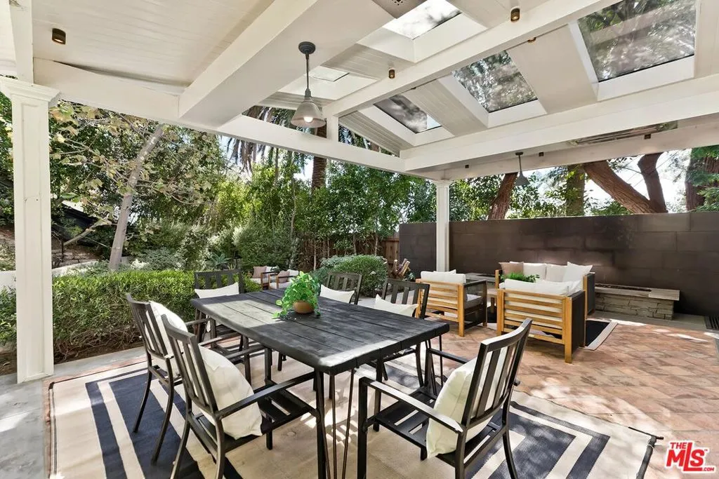This beautiful craftsman cottage situated on a sprawling parklike lot at the base of Runyon Canyon features original architectural details and city views. Set at the back of a landscaped path, the home feels serenely private surrounded by nature. Enter into a gracious foyer off the welcoming front porch and into a formal living room anchored by a fireplace with french doors. The dining room flows directly into the well equipped kitchen with newer appliances and a breakfast area. An entertainer's dream of a backyard with multiple areas for sitting and dining expands the living space and is surrounded by lush vegetation and hardscaping. The second floor features a large primary with a sitting area, a wonderful second bedroom and a spacious charming bathroom. The top floor has a third bedroom or an office, with a newer bathroom complete with walk-in shower, a rooftop deck with city views. A separate 2 car garage with direct street access, main floor powder room, laundry area and ample built-ins round out the highlights of this stunning property. Moments from the best restaurants and entertainment of Hollywood and West Hollywood, all while remaining uniquely tranquil make this home one worth running to.
