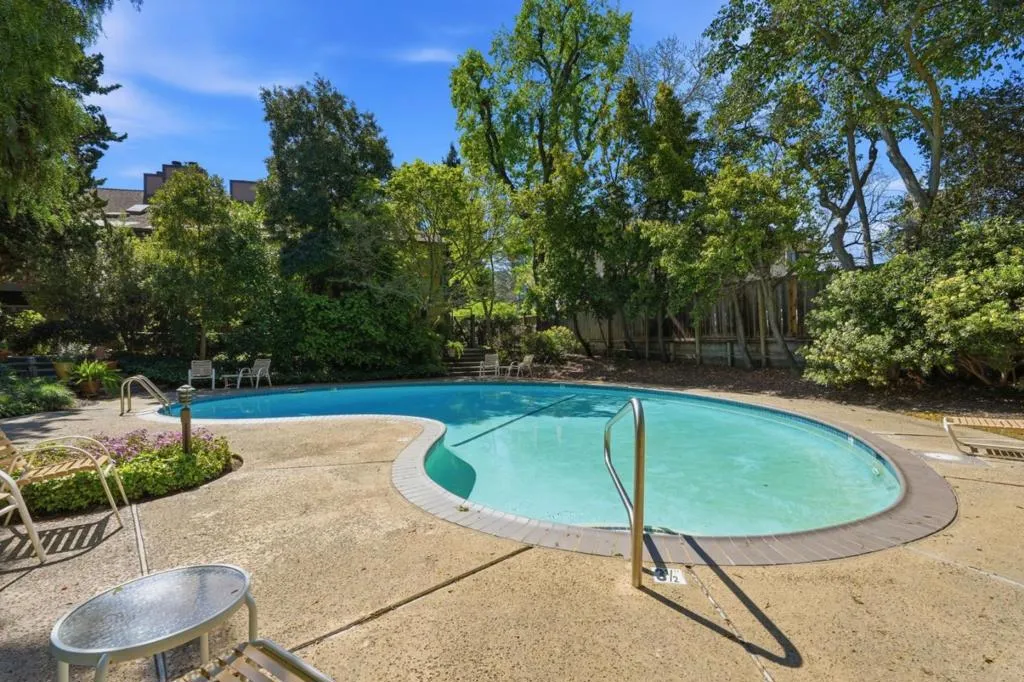 Beautifully remodeled 1st-floor condo featuring rare two private outdoor spaces including a spacious backyard, front patio, and detached garage. A formal entry leads to a bright, functional floor plan filled w/ natural light. The updated kitchen features Shaker cabinetry, quartz countertops, SS appliances, bar seating, & a dining area w/ large windows. The inviting step-down living room offers recessed lighting, a contemporary fireplace w/ tiled hearth & mantel, and sliding glass doors opening to a private front patio. Additional highlights include an oversized laundry room w/ full-size washer and dryer, vinyl plank flooring, and extra storage. The spacious primary suite offers generous closet space and sliding glass doors leading to the cozy backyard, creating a rare outdoor retreat ideal for relaxing or gardening. The updated bathroom includes a shaker vanity with the designer tile shower-over-tub. Located in a well-maintained community w/ mature landscaping and a swimming pool, the property is near San Antonio Center, The Village at San Antonio, and Castro Street dining. Nearby parks include Rengstorff, Shoreline Lake, & Stevens Creek Trail. Easy access to 101, 85, & 237, Central Expressway, Caltrain, and major tech firms including Google, LinkedIn, & Microsoft. Welcome Home.