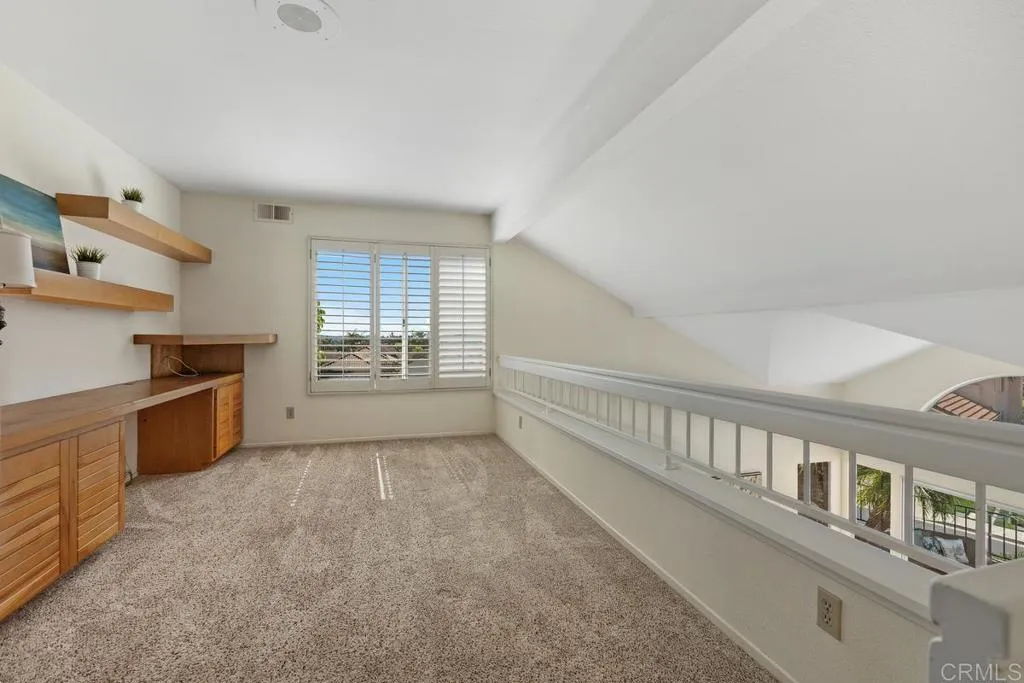 Welcome to this beautifully positioned corner lot property in the highly sought-after Panorama community of Shadowridge. This former model home showcases soaring high ceilings and an abundance of natural light throughout, creating an open and inviting atmosphere.The thoughtfully designed floor plan features a highly desirable primary bedroom on the main level, offering convenience and privacy. Upstairs, you’ll find a spacious secondary bedroom plus a versatile loft—perfect for a home office, guest space, or additional living area. Ideally situated on a premium corner lot, this home enjoys enhanced privacy and a bright, airy feel. Located within the well-maintained Shadowridge community, residents benefit from peaceful surroundings while being just minutes from shopping, dining, golf, and coastal access. A rare opportunity to own a light-filled, flexible floor plan in one of Vista’s most desirable neighborhoods.