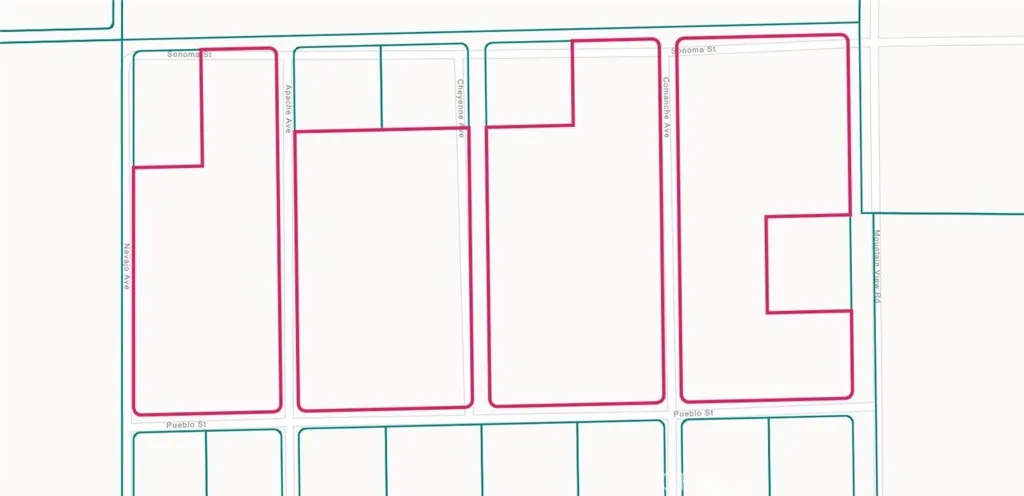 38850 Mountain View Rd, Newberry Springs, CA 92365 APN 0539-051-07-0000 For sale is 55+ acres split into 25 separate lots with one parcel number. Can be a large ranch home, many homesites, a mobile home park etc. The possibilities are endless. GPS Coordinates: NE Corner (Mountain View at Sonoma): 34.959188, -116.679653 SE Corner (Mountain View at Pueblo): 34.955758, -116.679598 SW Corner (Pueblo at Navajo): 34.955588, -116.687930 NW Corner (Sonoma & E of Navajo): 34.959073, -116.687154