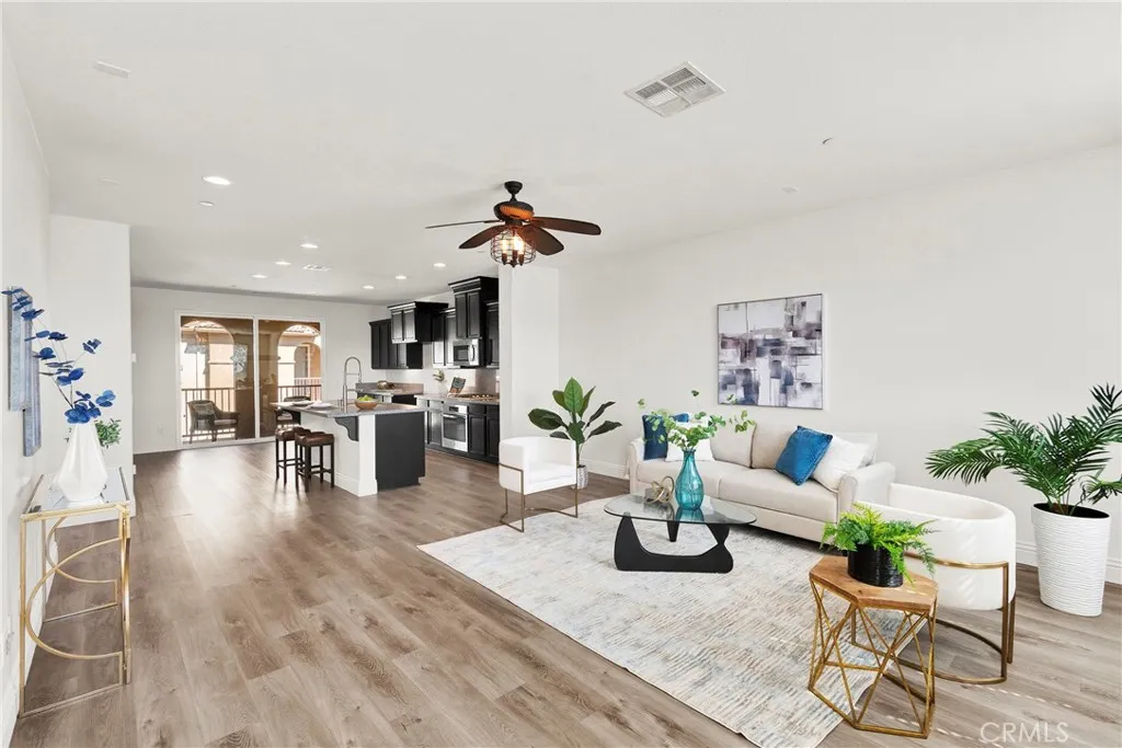 31 Sevilla in Rancho Santa Margarita is a beautifully maintained tri level townhome featuring 3 bedrooms, 2 full bathrooms, and 1 half bathroom. Located in the desirable Tesoro Trails community by D.R. Horton, this residence showcases contemporary architecture, quality construction, and thoughtfully designed spaces throughout. The home includes an attached direct access two car garage with tandem space that can accommodate a third vehicle, along with custom built shelving that provides excellent additional storage. Inside, the open concept design connects the living, dining, and kitchen areas, highlighted by tall ceilings, large windows, recessed lighting, and abundant natural light that creates an inviting atmosphere. The kitchen features a center island and ample cabinetry, complemented by a private patio that provides an ideal outdoor space for relaxing or entertaining. The primary suite features a walk in closet and an en suite bathroom. Additional highlights include a convenient half bathroom for guests, generous storage throughout, and a dedicated laundry room with space for a full size washer and dryer. Tesoro Trails enjoys a prime location near the 241 Toll Road, providing easy access to shopping, dining, parks, hiking and biking trails, and the many amenities that make Rancho Santa Margarita one of Orange County’s most desirable communities. This move in ready home presents an excellent opportunity for buyers seeking a modern, low maintenance property in a highly sought after neighborhood.