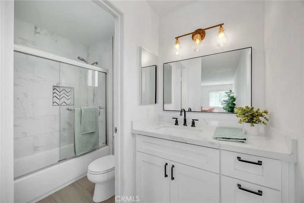 Welcome to this lovely Diamond Bar residence offering 3 bedrooms, 3 bathrooms, 1,545 sq ft of comfortable living space, an attached two-car garage, and timeless charm from its 1988 build. Stepping inside, the living room greets you with vinyl flooring that extends throughout the main level, a bright bay window, and recessed lighting that creates an inviting atmosphere. The living room transitions seamlessly into the formal dining area, where large windows bring in natural light and the layout connects effortlessly to the kitchen. The remodeled kitchen features custom white cabinetry, quartz countertops, and a window above the sink framing a peaceful view of the backyard. Just beyond, the family room offers a warm gathering space highlighted by a gas fireplace and convenient proximity to the kitchen. Also on the main level are a guest half bathroom and a dedicated laundry room, adding everyday practicality. Upstairs, two guest bedrooms share a beautifully updated three-quarter bathroom. The primary bedroom suite sits on the opposite end of the hall, offering an extra-large retreat complete with a stunning en-suite full bathroom. Outside, the backyard invites relaxation and entertaining with its large covered patio, generous lawn, and classic brick hardscape. Other improvements include a new HVAC system (1yr old), three year old roof, and a two year old tankless water heater. The location places you near award-winning schools, great restaurants, and abundant shopping options, making this home an exceptional opportunity in a highly desirable community.