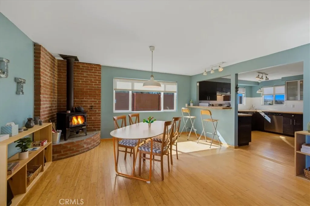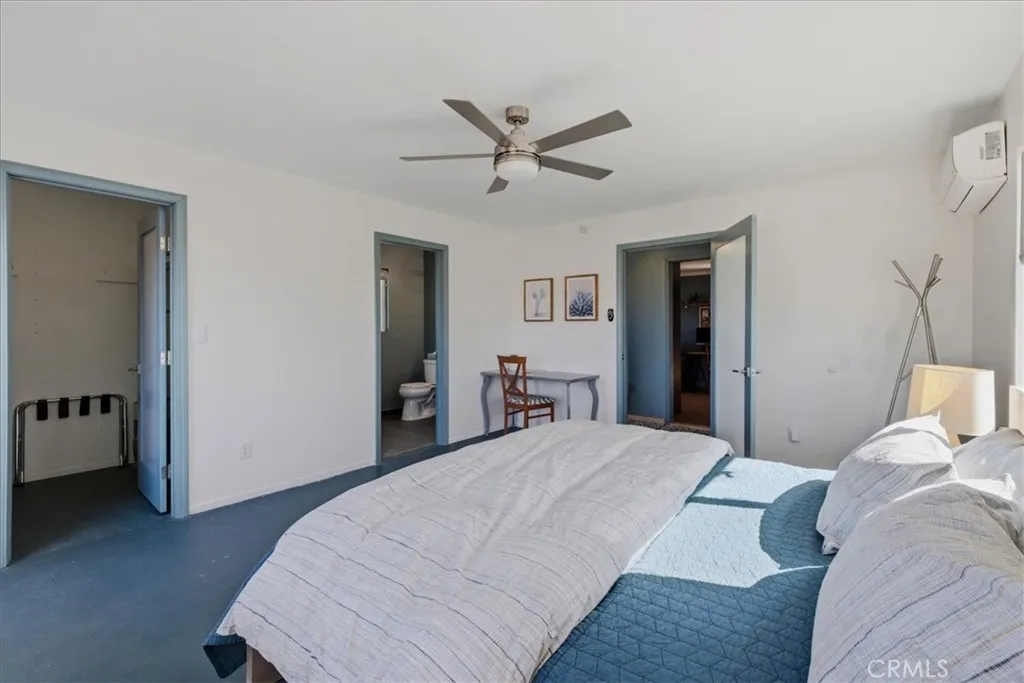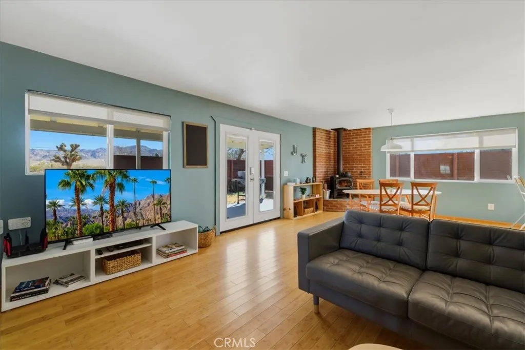 EPIC VIEW RETREAT ON 2.5 ACRES IN NORTH JOSHUA TREE! Surrounded by wide desert horizons and endless sky, this 2.5-acre property in north Joshua Tree offers a rare chance to live fully immersed in the landscape. Here, the boundaries between indoors and outdoors soften. Morning light stretches across the land, wildlife moves quietly through the distance, and evenings unfold beneath a canopy of stars. The thoughtfully designed home features a split floor plan that supports both privacy and connection. Two generous en-suite bedrooms are set apart from one another, creating peaceful retreats, while a third bedroom offers flexibility for guests, creative work, or additional living space. It's a layout that feels grounded and open, well-suited to hosting while still following the quiet rhythms of the desert. Inside, natural textures and clean lines complement the surroundings. Bamboo flooring in the dining and living areas while the kitchen features butcher-block counters, stainless steel appliances, and a classic subway tile backsplash. In the dining area, a wood stove adds warmth and a sense of gathering on cool desert nights. Updated windows and efficient mini-split HVAC ensure comfort in every season. Step outside to large covered front deck that looks out over the land, offering a front-row seat to shifting light, passing clouds, and expansive views. With space to seat a crowd, it becomes a natural place for shared meals, long conversations, and quiet moments. Don't miss the laundry and cable-internet availability, making extended stays or full-time living seamless. This is more than a home; it's a place to reconnect with the land, to slow down, and to live in tune with the desert's vast, enduring beauty. Come see!