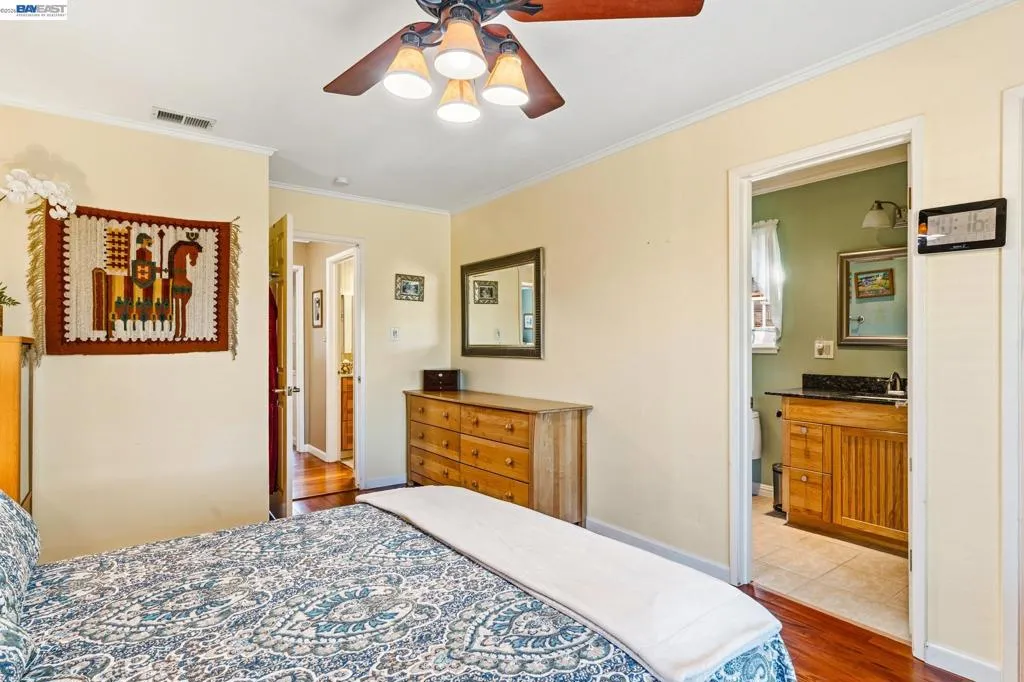 An adorable home located in the highly sought-after Spring Valley neighborhood of Martinez. This delightful 3-bedroom, 2-bathroom residence offers approximately 1,403 square feet of comfortable living space and has been thoughtfully updated throughout. Inside, you’ll love the hardwood & laminate tile flooring throughout (no carpet!), recessed lighting, dual-pane windows, central heating and air conditioning, and the inviting step-down living room. The versatile formal dining area can easily double as a secondary living room and features a cozy wood-burning fireplace. The remodeled kitchen is a true highlight, complete with elegant granite countertops, an oversized breakfast bar, lots of cabinet storage and Kitchen Aid appliances. The primary bedroom suite is a private retreat with its own remodeled bathroom, walk-in closet, and patio door that opens directly onto its own backyard deck. Two additional spacious secondary bedrooms provide plenty of room for family or guests. There's an incredible backyard with covered wooden deck enhanced w/apricot, orange, and mulberry trees, plus a charming water fountain that attracts birds for a peaceful setting, College Park High School zoned and minutes to, local parks and major retail, restaurants and commuter friendly to Highways 4 and 680!