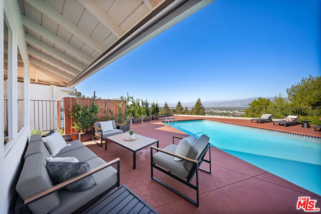 Presenting a rare, extraordinary opportunity to reside on Mountcastle, one of the finest streets in Studio City's acclaimed Wrightwood Estates. Hip, relaxed, refined, a stunning redesign of a Mid-Century California Ranch bringing contemporary luxury to this unrivaled address with this masterful, modern makeover. Crowning a sweeping half acre lot at the end of a serene, picturesque cul-de-sac the property is the epitome of peaceful seclusion, residing in divine harmony with its organic, verdant environment of towering trees and lush grounds. Boundless, breathtaking panoramic views of the mountains beyond and city lights below, among finest in the hills, are showcased from multiple vantage points. Embracing the modern urban lifestyle of easy, relaxed living, the floor plan is designed for entertaining and features sunlit interiors that embody exceptional style and design with a finely polished sophistication. Newly refinished wood floors grace the living areas. The dining area lends itself ideally to both formal and informal friend and family gatherings. Opulent redesigned baths feature the latest on-trend design in lighting, fixtures, and finishes. The crips, bright kitchen is sleek and lustrous with abundant cabinetry and breakfast area with direct patio access. A continuum of glass walls throughout the home beautifully bridge the aesthetic divide between structure and nature revealing an idyllic oasis and private hillside retreat. An extraordinary outdoor space that fulfills every entertainment possibility. Three bedrooms with three baths, including a luxe primary suite with direct backyard pool access, round out the comfortable accommodations. Located just moments from CBS, NBC, Universal, Disney, and Warner Bros. Studios, the Hollywood Bowl, Studio City's famed farmer's market, and the chic shopping and dining district along Ventura Blvd. A compelling lifestyle, combined with the beauty of undisturbed nature in these hallowed hillside grounds awaits the fortunate new owners. Welcome!