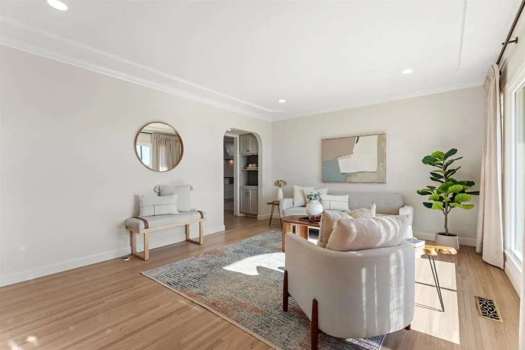 Beautifully remodeled single-story home located in one of Chula Vista’s most desirable and tightly held neighborhoods where homes rarely become available. This mid-century home has been extensively renovated while preserving its original charm, creating a unique blend of modern upgrades and timeless character. The home was taken largely to the studs and rebuilt with thoughtful upgrades including a complete electrical rewire with a new 200-amp panel, updated plumbing, upgraded ducting, and a split-unit AC/heat system in the back bedroom. The chef’s kitchen features high-end cabinetry, an industrial-grade range with matching hood, GE double oven with built-in microwave, Bosch dishwasher, and designer fixtures. Original red oak hardwood floors have been beautifully refinished and extended with matching oak flooring in the spacious great room. A standout feature of the home is the oversized family room, offering exceptional flexibility for entertaining, relaxing, or customizing to fit your lifestyle. Additional upgrades include recessed lighting throughout, new chandeliers and ceiling fans, custom closets, new interior doors with upgraded hardware, crown molding, baseboards, and fresh interior and exterior paint. The backyard offers low-maintenance landscaping, expansive paver patios, a spa/jacuzzi, and ample space for future possibilities including a pool. A rare drive-through garage adds convenience and versatility for additional parking, storage, or recreational use. Ideally located just minutes from vibrant Downtown Chula Vista and within walking distance to 3rd Avenue’s popular restaurants, coffee shops, breweries, and community events. Nearby amenities include Rosebank Elementary, Rohr Park, and Chula Vista Golf Course, with easy access to the exciting bayfront redevelopment currently transforming the area and enhancing long-term value.