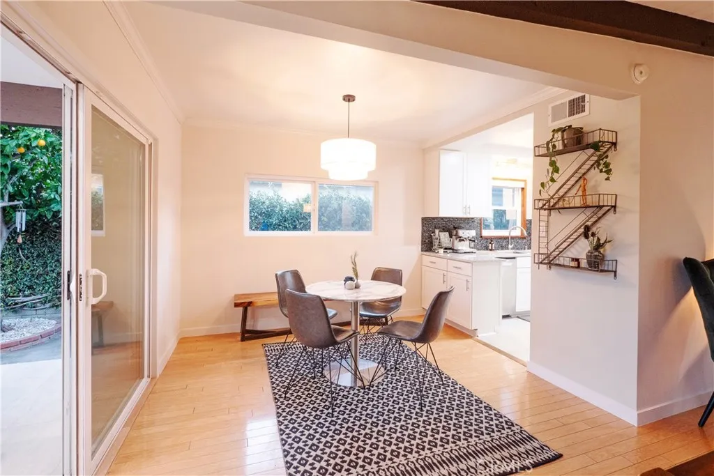 The home you've been waiting for has just hit the market. This stunning 3-bedroom Valley Glen residence delivers an exceptional blend of comfort, style, and modern upgrades. Hardwood floors run throughout and skylight tubes fill the living room with natural light. Thoughtful details like custom hallway wainscoting and accent ceiling beams add warmth and character. The living room centers around a wood burning fireplace and flows seamlessly into a wet bar, with stained glass and espresso stain finish. The updated kitchen features large format porcelain tile, recessed lighting, ample cabinetry and generous counter space. The spacious primary bedroom offers his & her closets and an en suite bath with Carrara marble countertops, dual sinks, and a glass-enclosed shower. Each bedroom is equipped with a ceiling fan in addition to central HVAC. Step outside through brand new 14-foot wide doors to a fully permitted covered patio designed for true California indoor/outdoor living. The gabled structure offers high ceilings, skylights, sleek ceiling fans, and contemporary step lighting, surrounded by mature trees, including a bountiful orange tree in a private, relaxing backyard setting. The property also offers a 2 car garage with extensive wall-to-wall built-in storage, driveway parking for an additional 3 cars, two outdoor sheds, and a drought-tolerant front yard. DON'T FORGET TO WATCH THE VIRTUAL VIDEO!