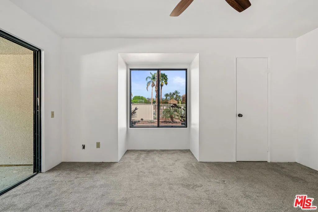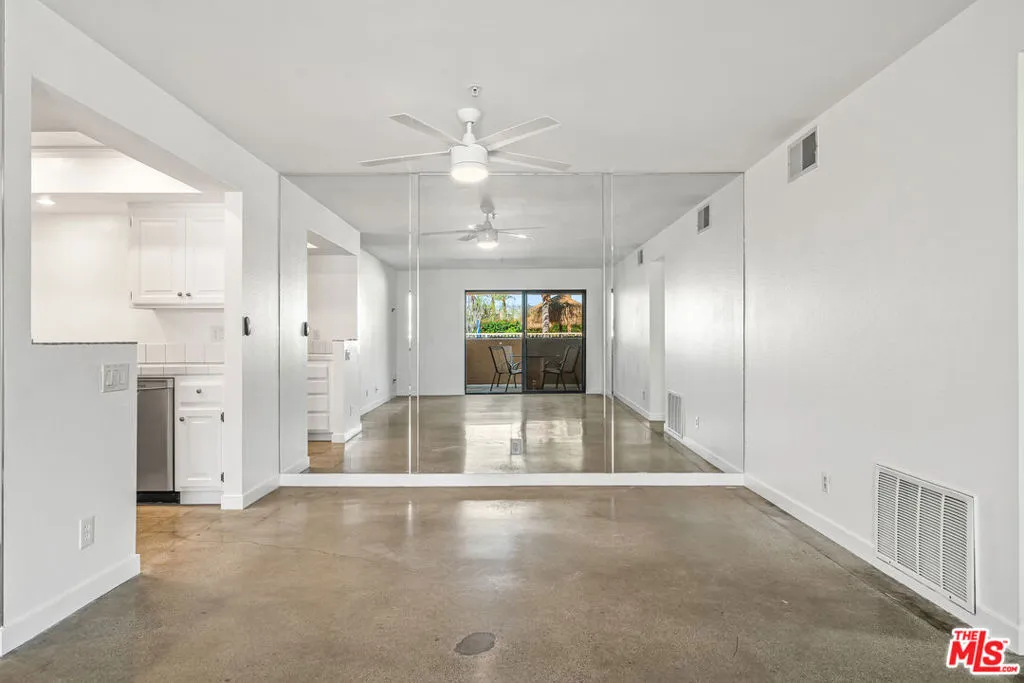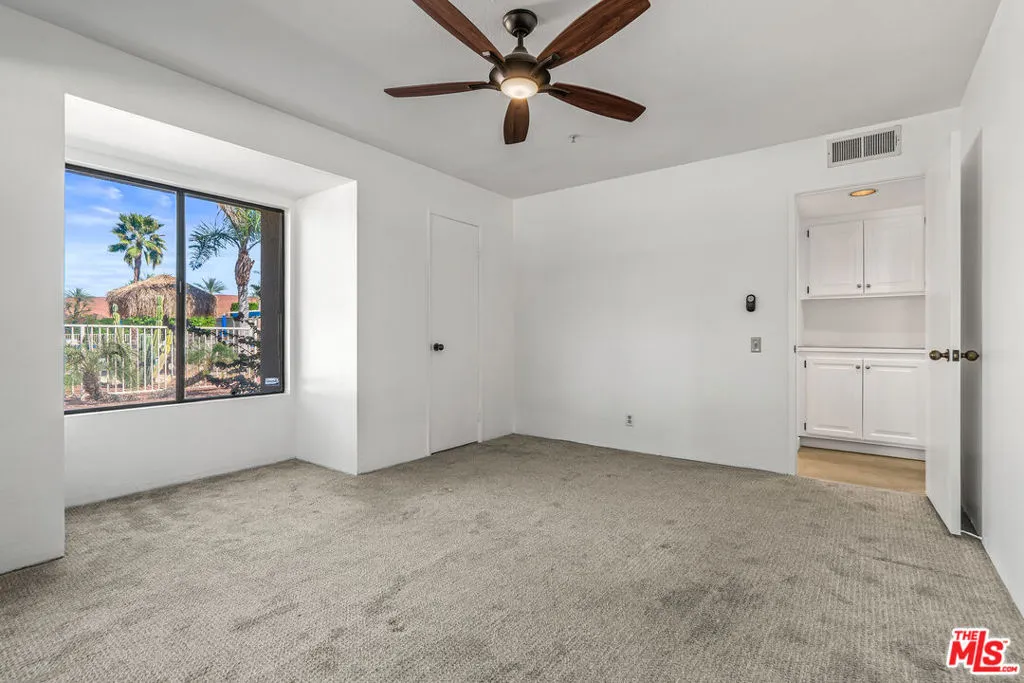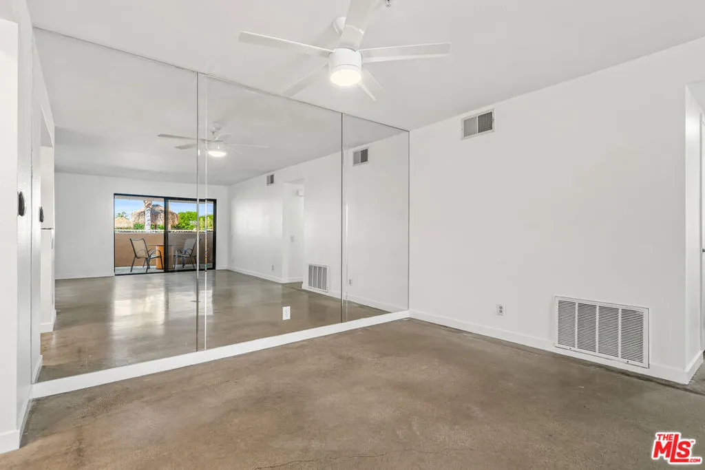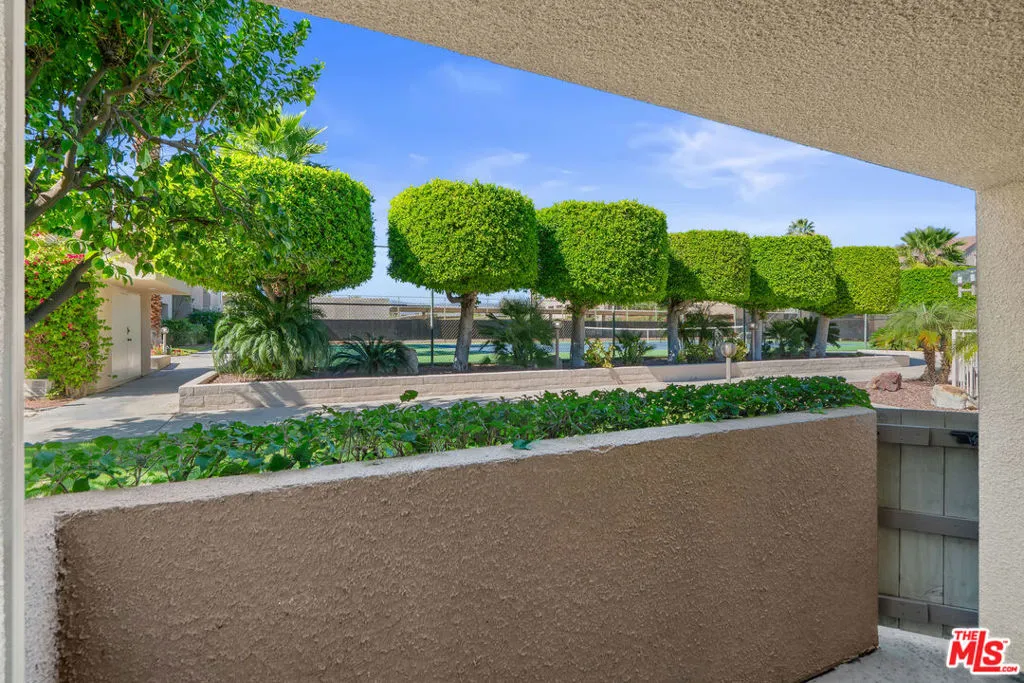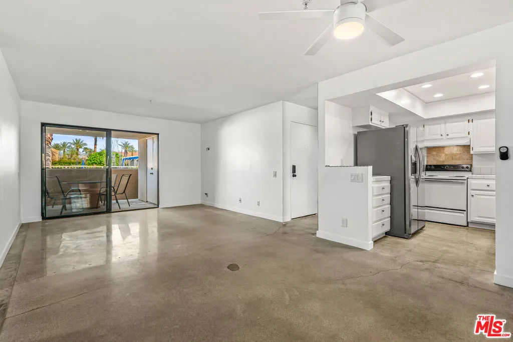 Location, Location, Location!Situated in the heart of Downtown Palm Springs, this beautifully maintained ground-floor condo places you just moments from the city's best entertainment, dining, culture, shopping, museums, casino, and spa experiences. This versatile property is perfect as a vacation getaway, full-time residence, or high-performing investment, with 7-day minimum short-term rentals permitted. The ground-floor unit features a bright open floor plan with stylish concrete flooring throughout the living area, flowing seamlessly to a spacious covered east-facing patio overlooking the pool area ideal for relaxing mornings or entertaining guests. A second private patio, accessible from both bedrooms, offers additional outdoor living space. The well-designed kitchen includes abundant cabinetry and connects to a convenient laundry/pantry area, making everyday living and hosting effortless. Both bedrooms feature newer carpet, and the home has been freshly painted throughout, making it truly move-in ready. Residents enjoy a resort-style community featuring: two sparkling pools, spa; Pickleball/tennis court; Lush desert landscaping with green & fruit trees; and Spectacular mountain views. Experience the best of Palm Springs living in a community designed for relaxation, recreation, and convenience. HOA dues include security service & internet. (See photos & floor-plan)