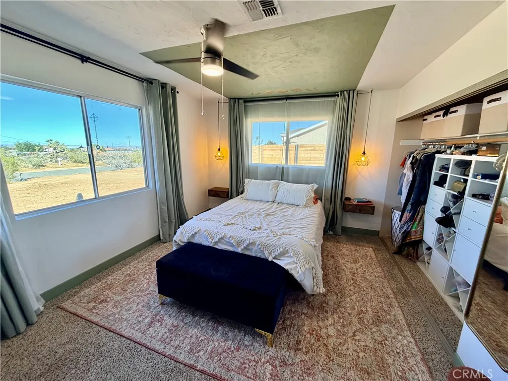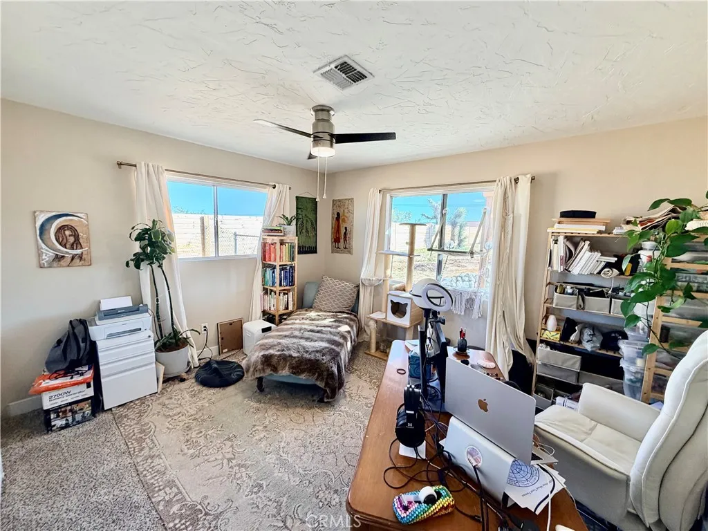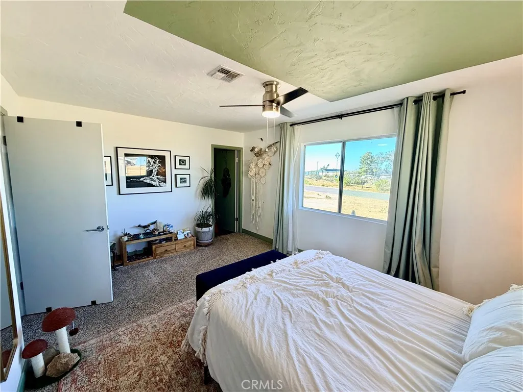 TURNKEY! Unlock modern desert vibes at 58271 Caliente St, where this turnkey contemporary ranch delivers instant cool with zero effort. A leased solar system slashes energy bills for efficient living, while the massive gated backyard, fully enclosed by rugged wood fencing, creates a pet paradise for your crew to play freely beneath Yucca Valley's starry skies. Freshly remodeled with sleek granite counters, soaring vaulted ceilings, and a dramatic sunken living room centered on a stunning stone fireplace, it's the ultimate hip, move-in-ready retreat.