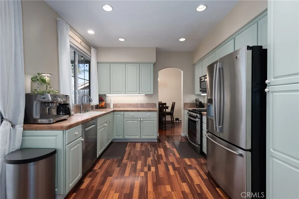 Welcome to this beautifully maintained two-story home in a highly desirable neighborhood! Featuring 3 spacious guest bedrooms that share a full bathroom upstairs, along with a large primary suite, this home offers both comfort and functionality. A convenient guest bathroom is located downstairs. The open floor plan includes a formal living room and a cozy family den, perfect for everyday living and entertaining. The stunning staircase showcases beautiful wood flooring and an elegant hand railing, adding warmth and character. The spacious kitchen has been recently updated with fresh paint, new hardware, and stainless steel appliances. Step outside to a private backyard featuring a covered patio with drop-down shaded drapery--ideal for relaxing or hosting guests. The curb appeal is exceptional, with custom front steps, a charming porch, spacious driveway, and well-maintained landscaping. Located just steps from a beautiful neighborhood park with picnic areas, volleyball, and a playground. This turnkey home is move-in ready and offers the perfect blend of style, comfort, and location.