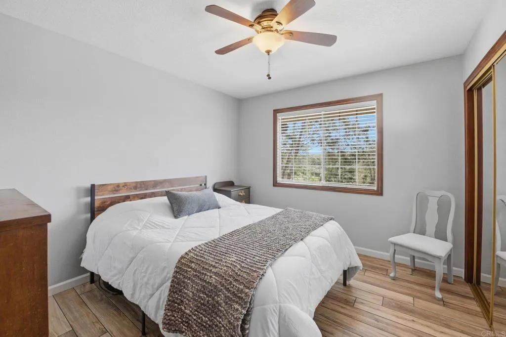 Welcome to Sage Road, where country living pairs effortlessly with a beautifully renovated home, just minutes from Temecula’s world-class wineries. Set on 5 private acres, this fully renovated 3-bedroom, 2-bath home offers 1,216 square feet of turnkey living. Mornings begin on the front porch as the sun rises over the hills, and evenings wind down with painted sunsets and some of the clearest night skies you’ve ever seen. Inside, all of the details have been thoughtfully updated. You’ll find wood-style tile flooring, granite countertops, newer stainless steel appliances, recessed lighting, central AC and dual-pane windows that fill the home with natural light. The layout is warm and inviting, featuring two well-sized secondary bedrooms and a guest bath with a tub, along with a beautifully renovated primary suite complete with a walk-in closet, stunning walk-in shower, and direct access to the backyard. The living room centers around a charming brick wood-burning fireplace and flows seamlessly into the kitchen and dining area. Step outside and embrace the lifestyle so many are searching for. Two expansive patios, a built-in outdoor fireplace, and BBQ area create the perfect setting for relaxed evenings and effortless entertaining. Beautiful as it is, the house is just the beginning, the land takes this property to the next level. With 5 usable acres, water run to the back of the parcel, a private well, and a graded pad already in place, the possibilities are endless. Bring your horses, animals, or create a space that reflects your vision. There’s ample room for trailers, toys, and future plans, all complemented by a newly paved driveway for easy access. The property has beautiful landscaping with irrigation ran throughout the olive trees. Enjoy low taxes, no HOA, and the freedom to create a lifestyle that fits you, while still being just down the road from Temecula’s best wineries, dining, and everyday conveniences.